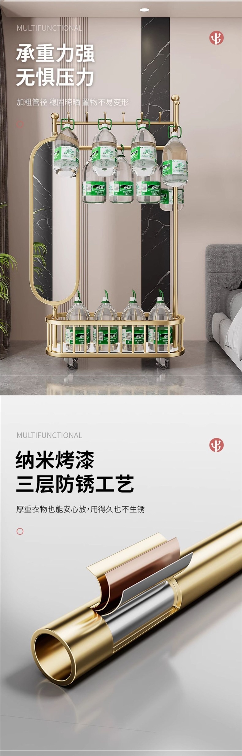 • 두꺼운 미디엄 라이트 럭셔리 골드 80cm [회전거울-4후크수납대형망바구니-회전바퀴]