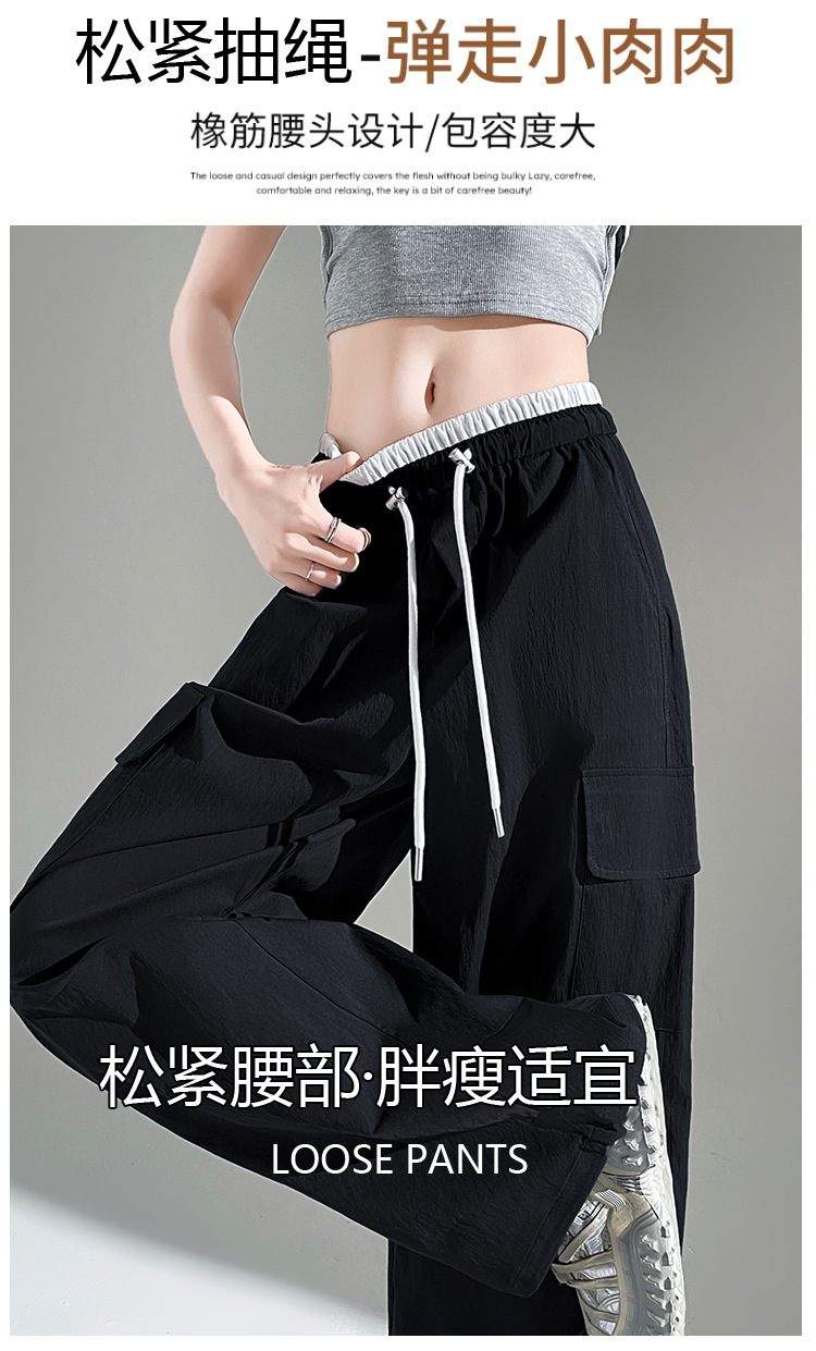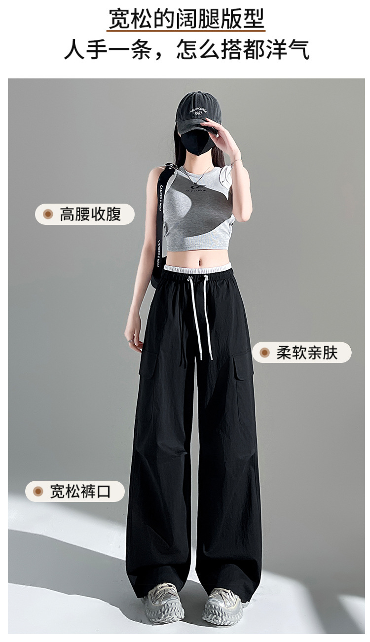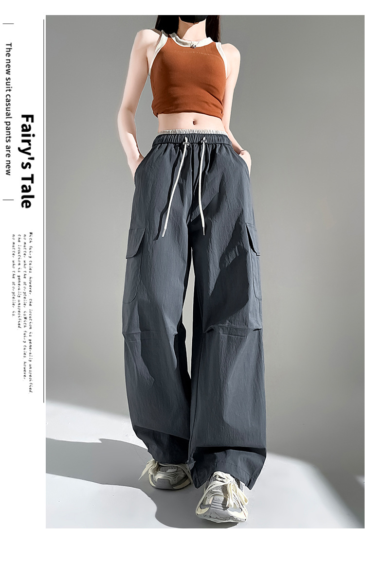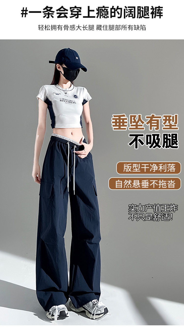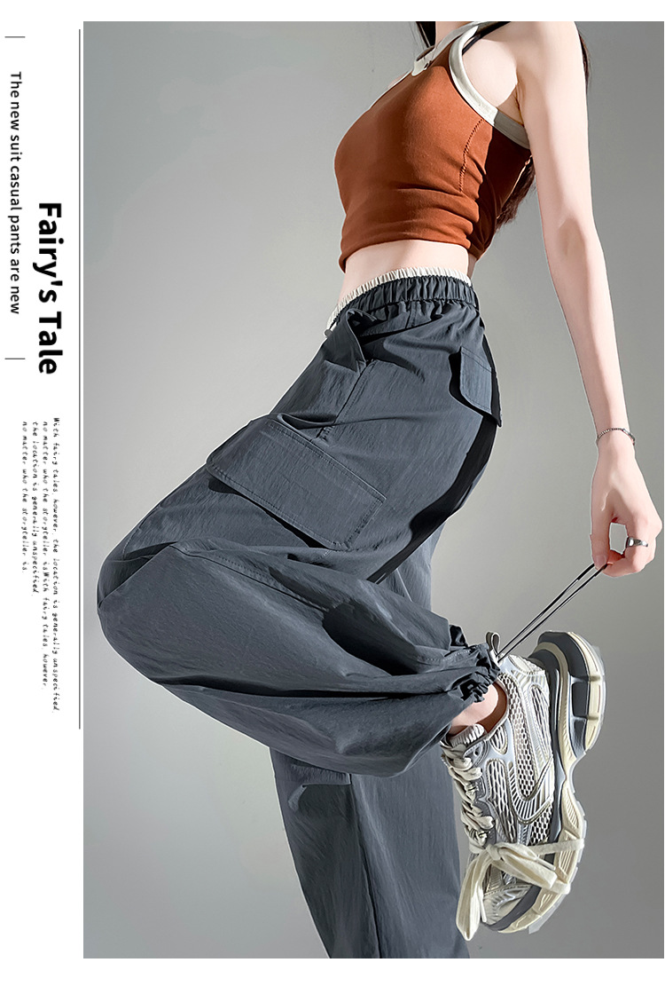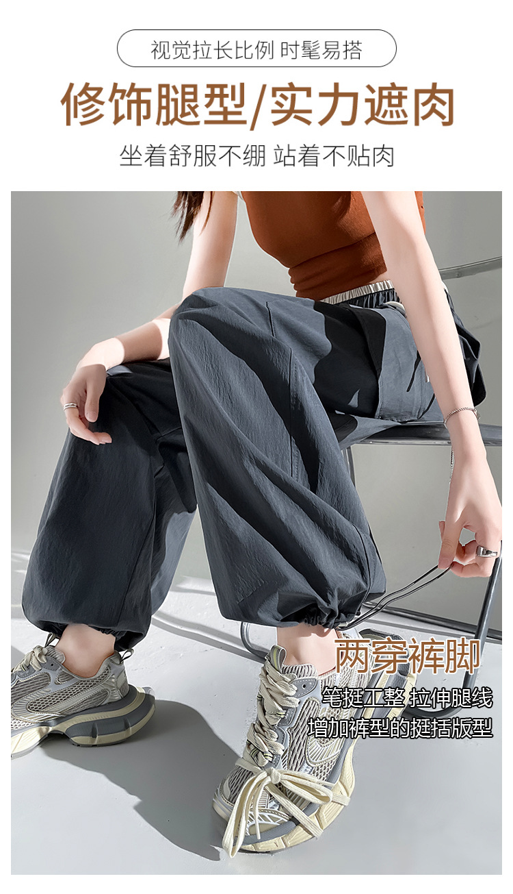 쿨 세이지 스타일 숨겨진 블루 빠른 건조 크록 바지 여성 여름 산 선 스크린 아이스 실크 스포츠 와이드 레그 바지 낙하산 바지스토어 가기