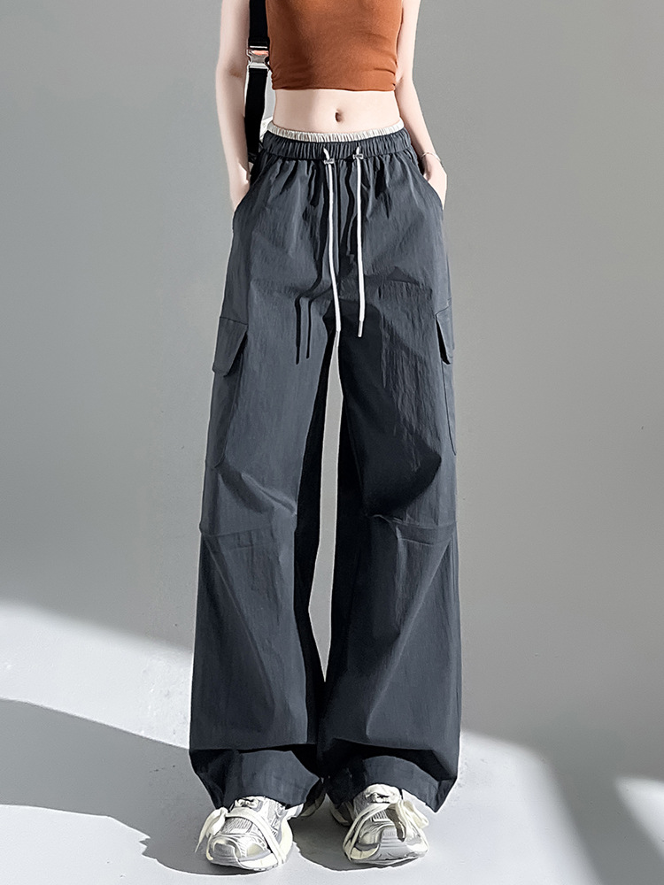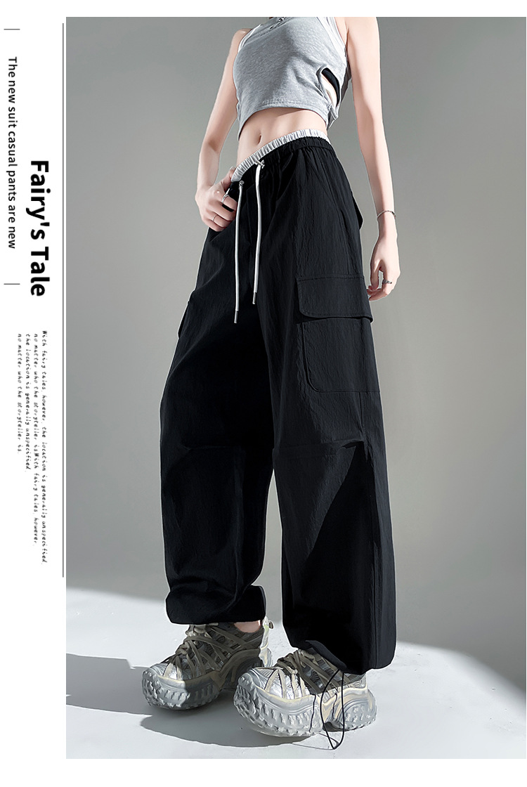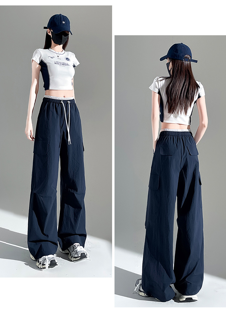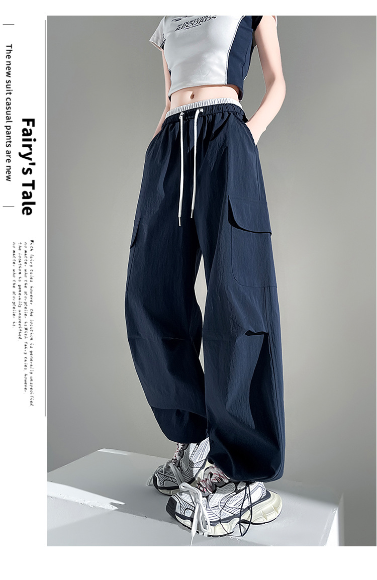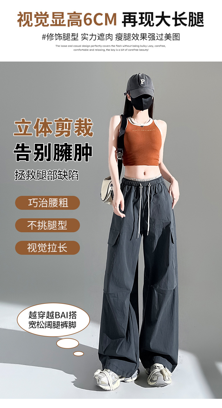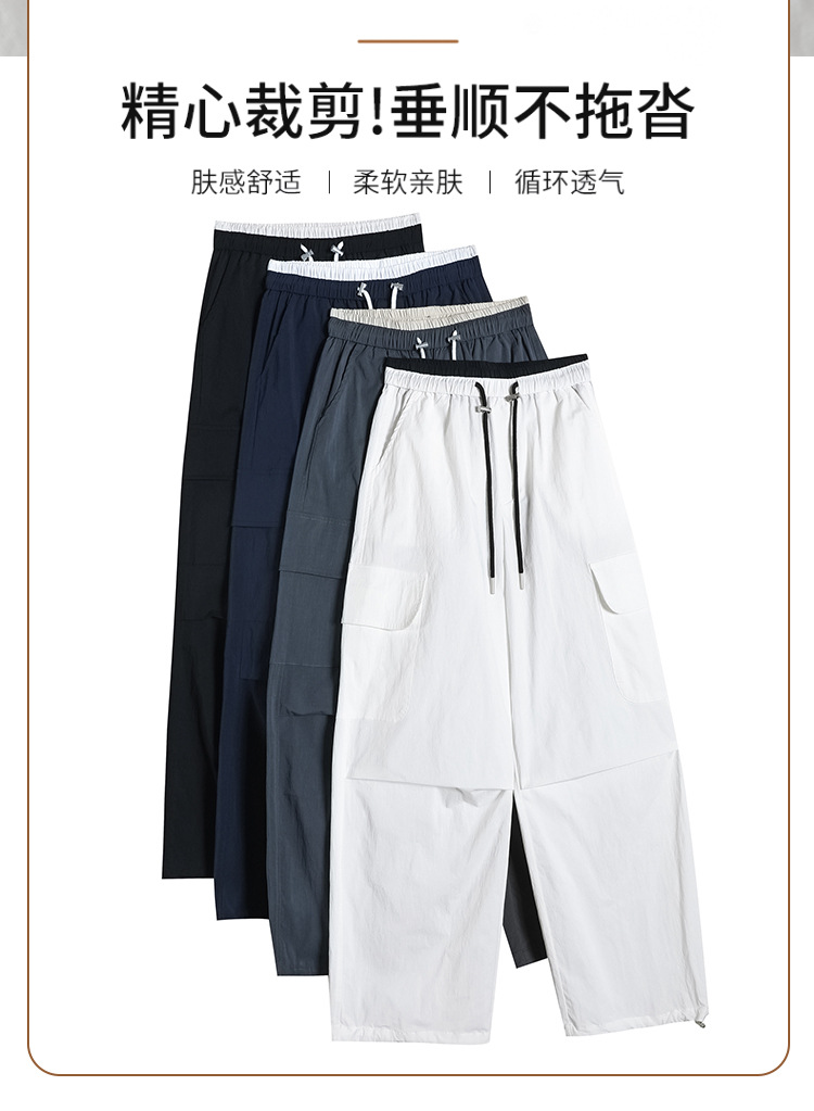 쿨 세이지 스타일 숨겨진 블루 빠른 건조 크록 바지 여성 여름 산 선 스크린 아이스 실크 스포츠 와이드 레그 바지 낙하산 바지스토어 가기