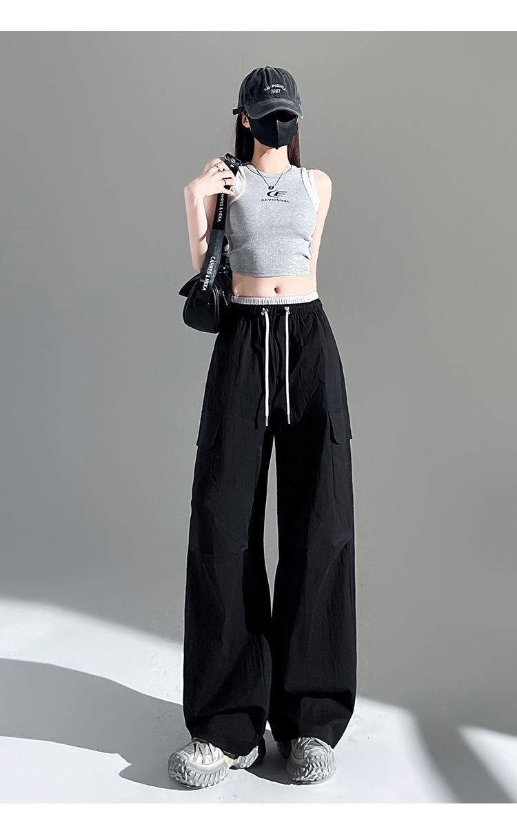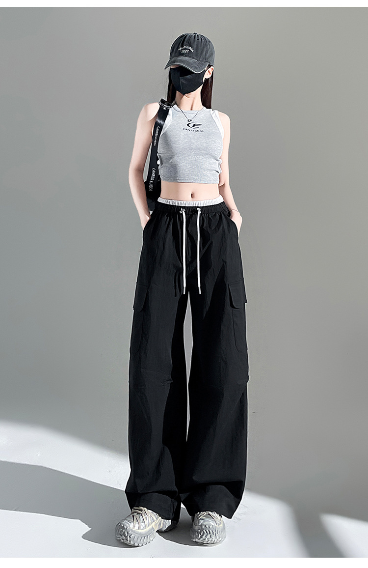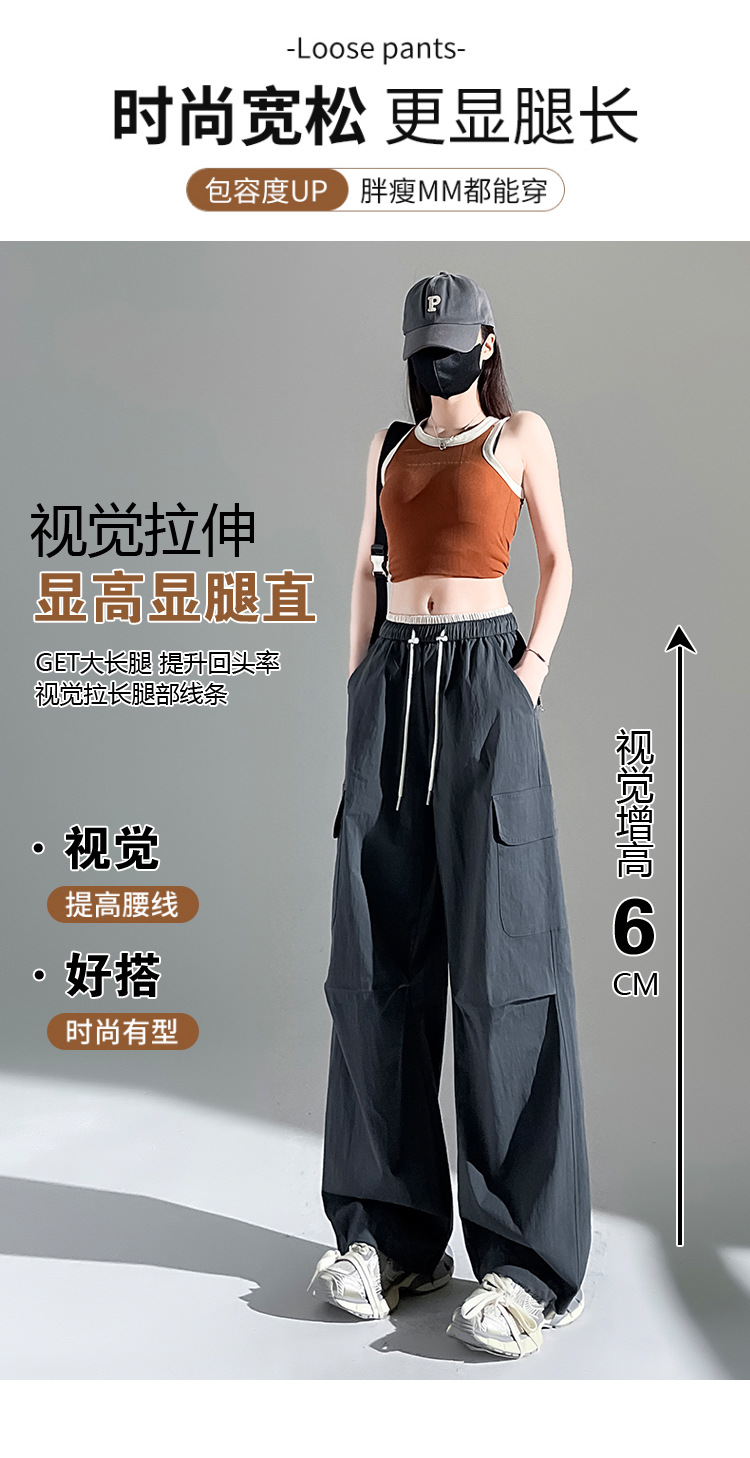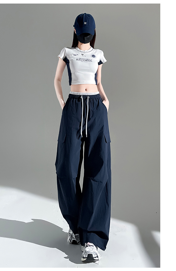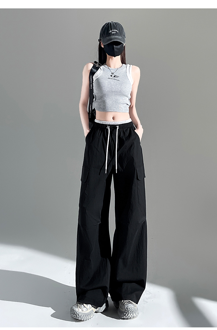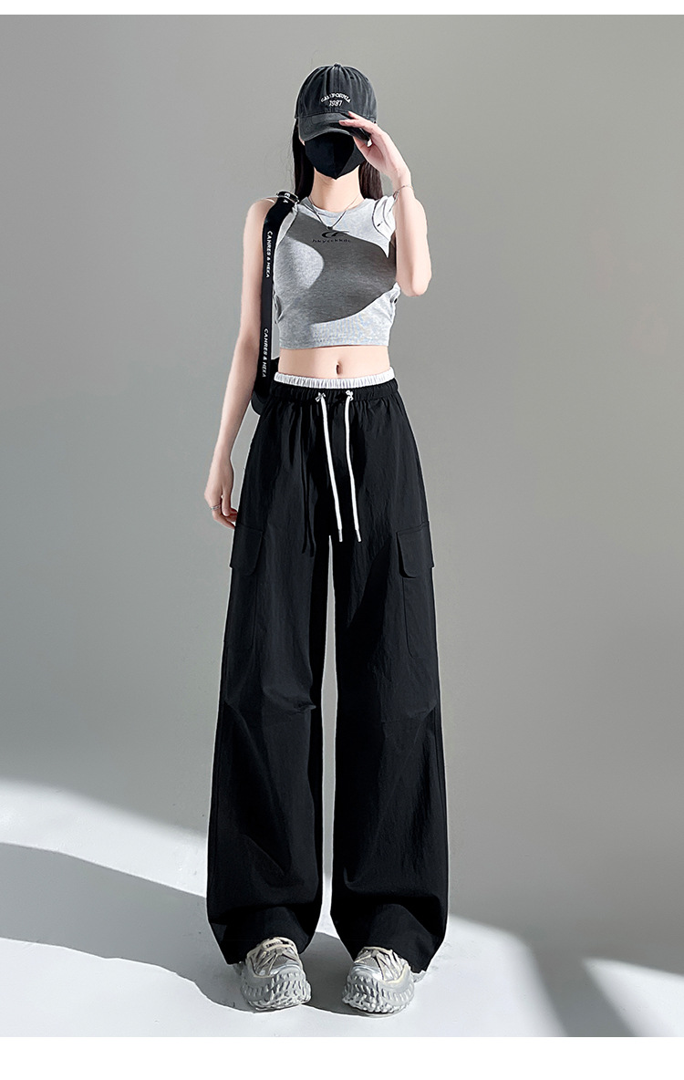 쿨 세이지 스타일 숨겨진 블루 빠른 건조 크록 바지 여성 여름 산 선 스크린 아이스 실크 스포츠 와이드 레그 바지 낙하산 바지스토어 가기