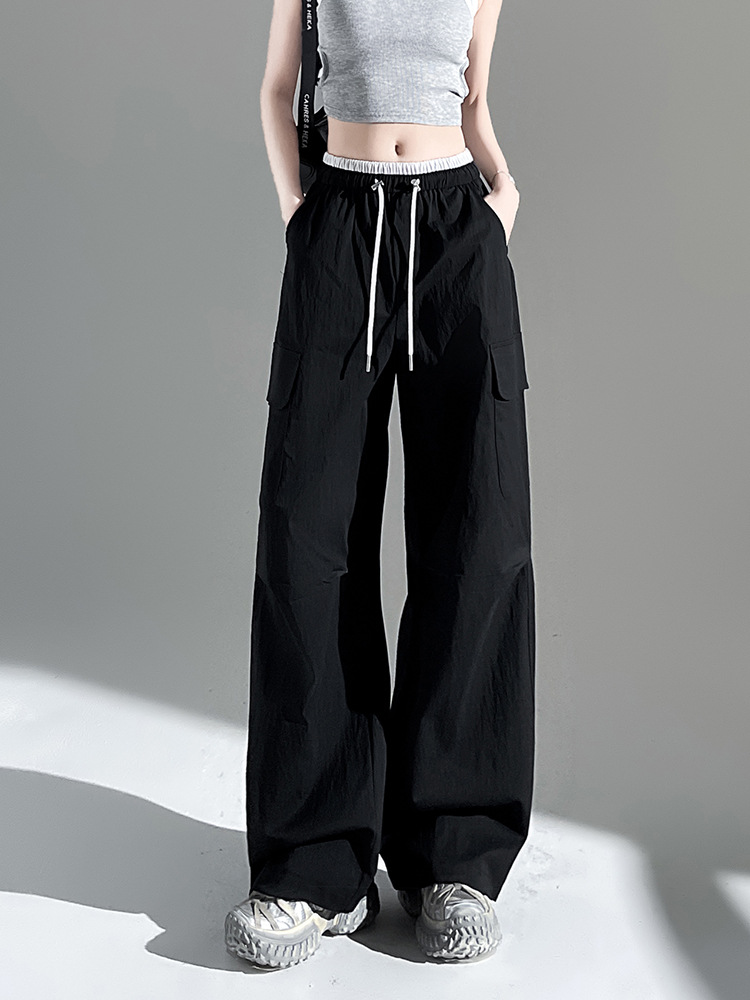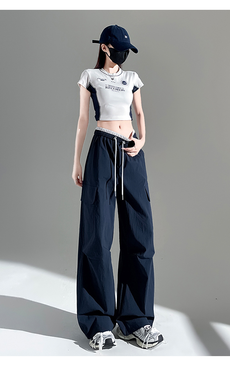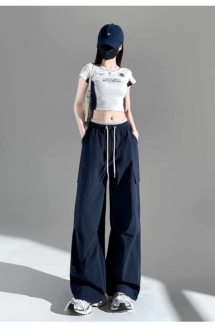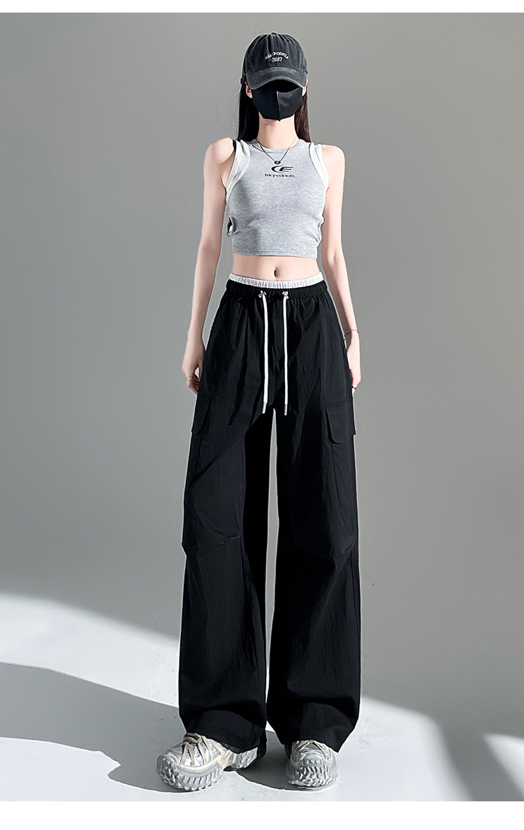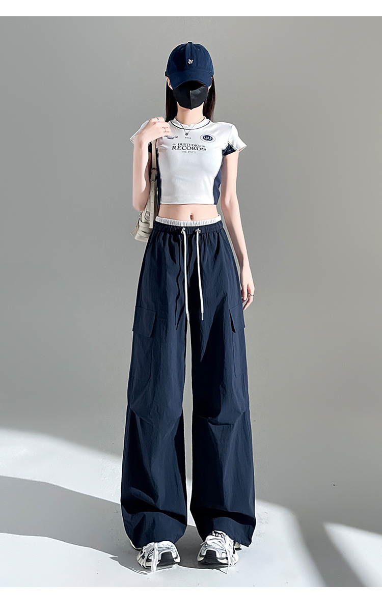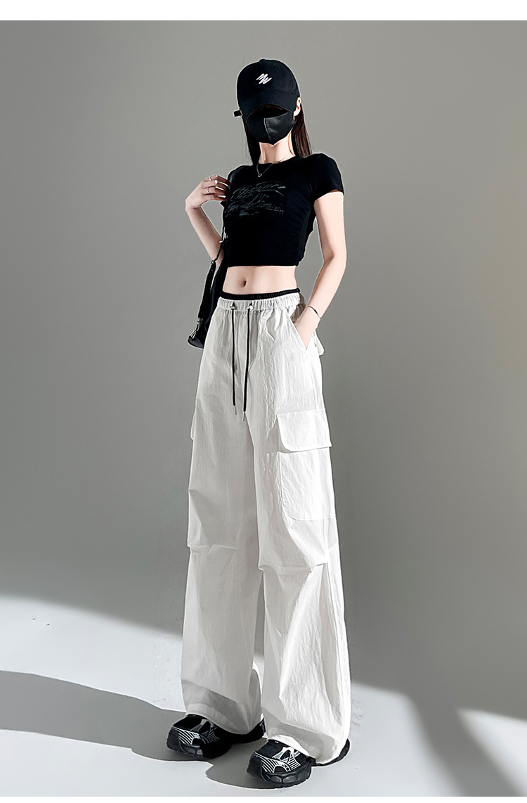 쿨 세이지 스타일 숨겨진 블루 빠른 건조 크록 바지 여성 여름 산 선 스크린 아이스 실크 스포츠 와이드 레그 바지 낙하산 바지스토어 가기