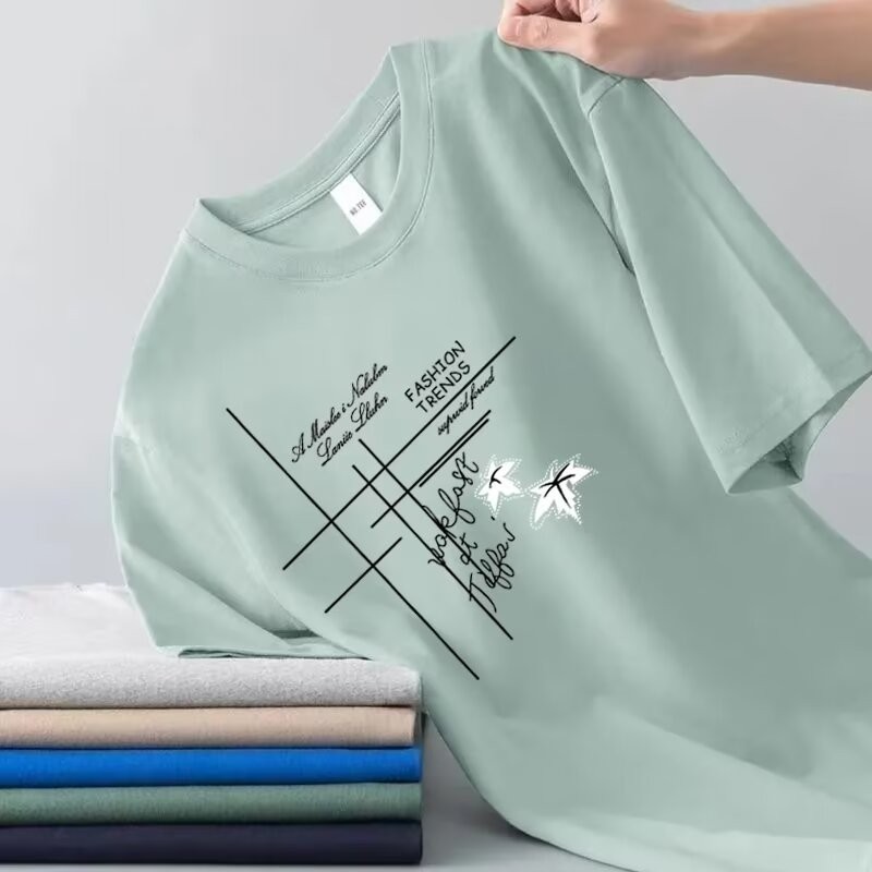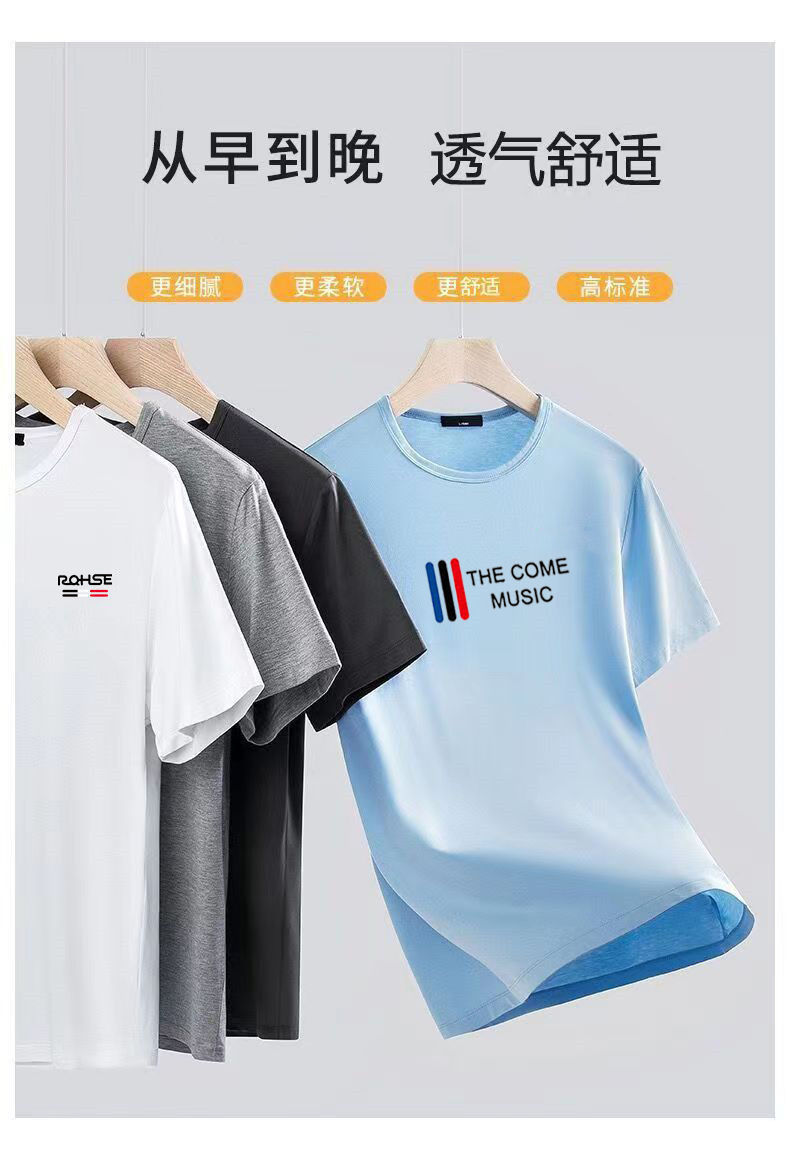 2025 여름 아이스 실크 얇은 반팔 티셔츠 남성용 트렌디 인 느슨한 반소매 탑 넥 프린트 티셔츠스토어 가기