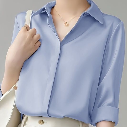 시폰 긴팔 셔츠 여자 2025 봄 새로운 솔리드 컬러 디자인 센스 느슨한 틈새 올 매치 여자 톱 올 매치스토어 가기