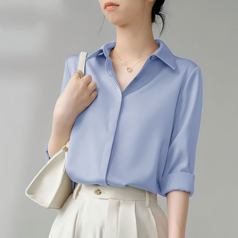 시폰 긴팔 셔츠 여자 2025 봄 새로운 솔리드 컬러 디자인 센스 느슨한 틈새 올 매치 여자 톱 올 매치