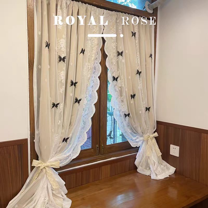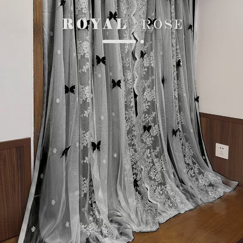 프린세스 프렌치 블랙 나비 렌탈 하우스 그물 레드 레이어 커튼 침실 음영 거즈 통합