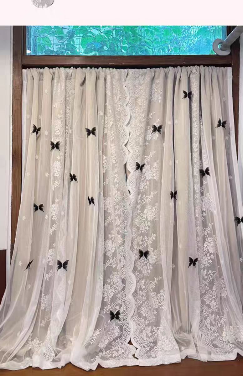 프린세스 프렌치 블랙 나비 렌탈 하우스 그물 레드 레이어 커튼 침실 음영 거즈 통합스토어 가기