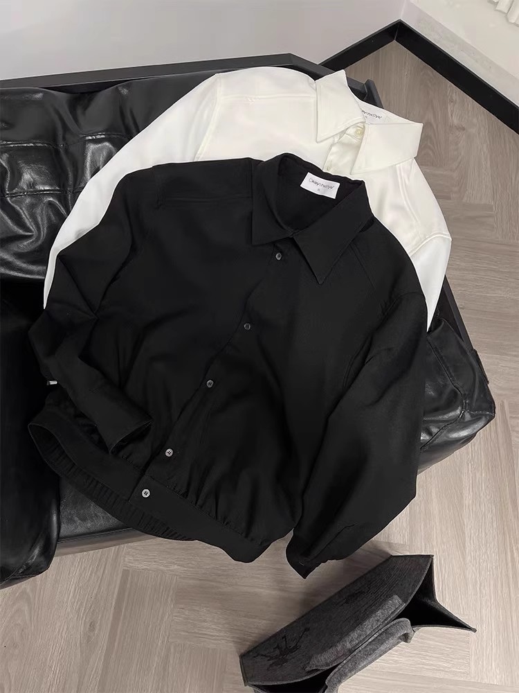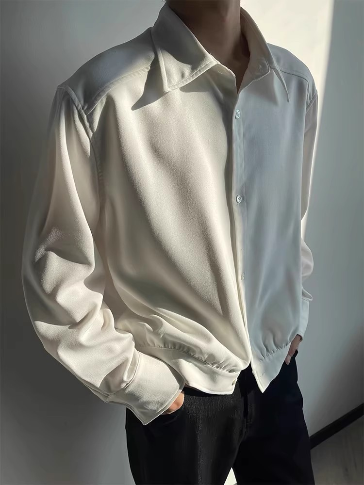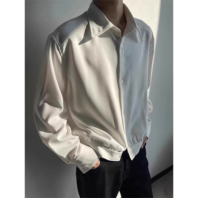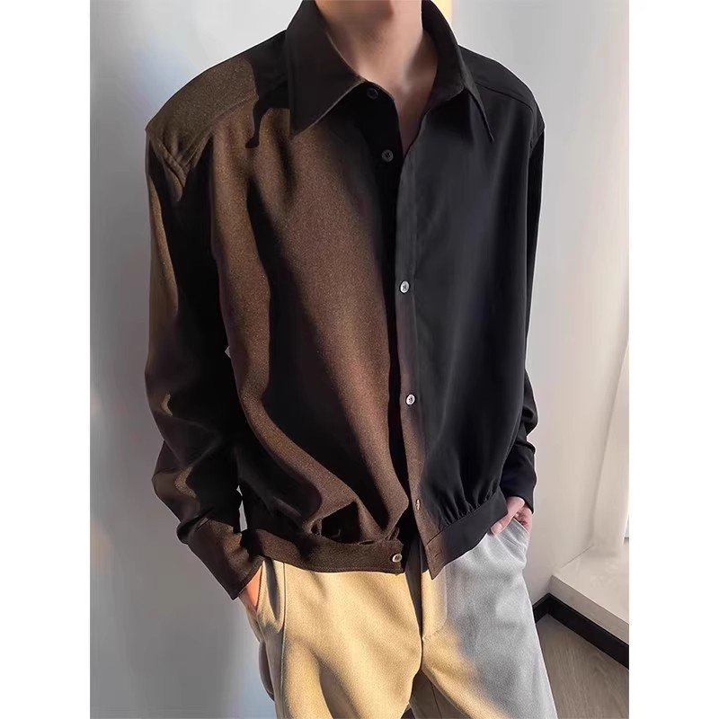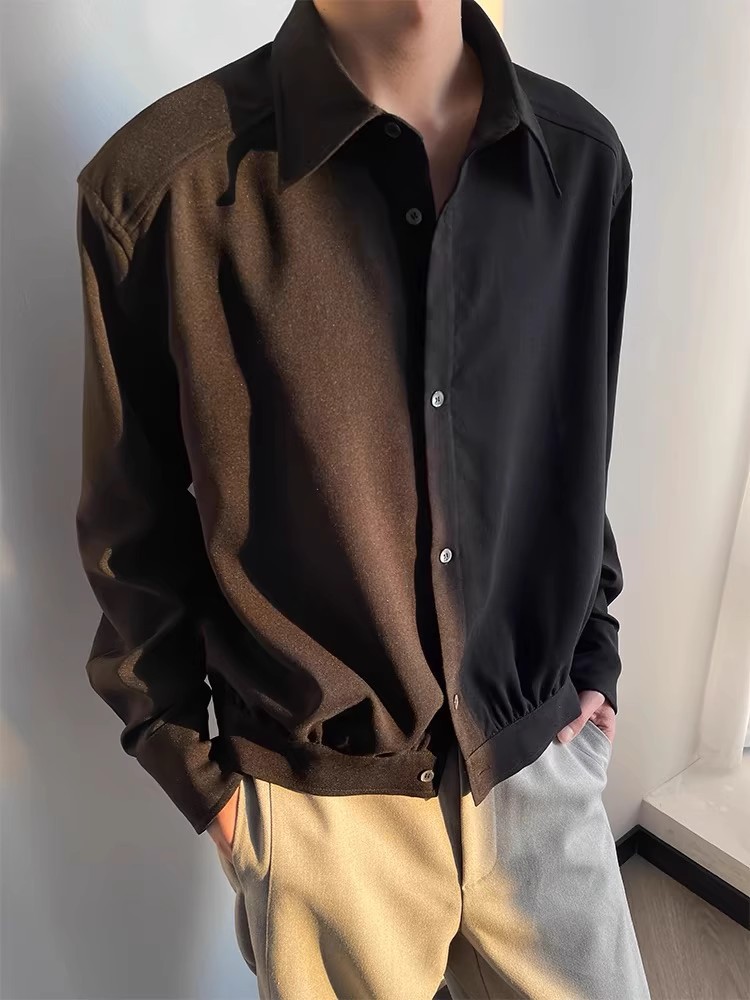 지적인 스타일의 남성용 블랙 셔츠, 고급 긴팔 봄 고급스러운 셔츠, 얇은 재킷스토어 가기