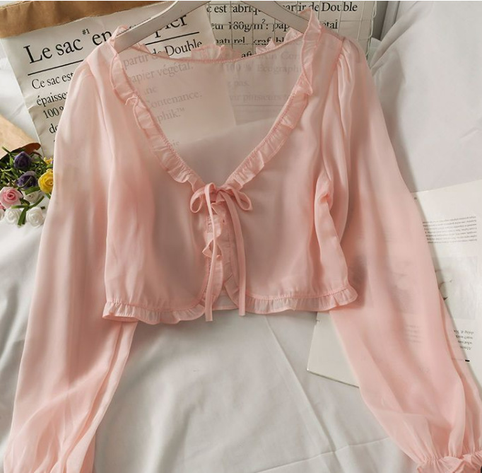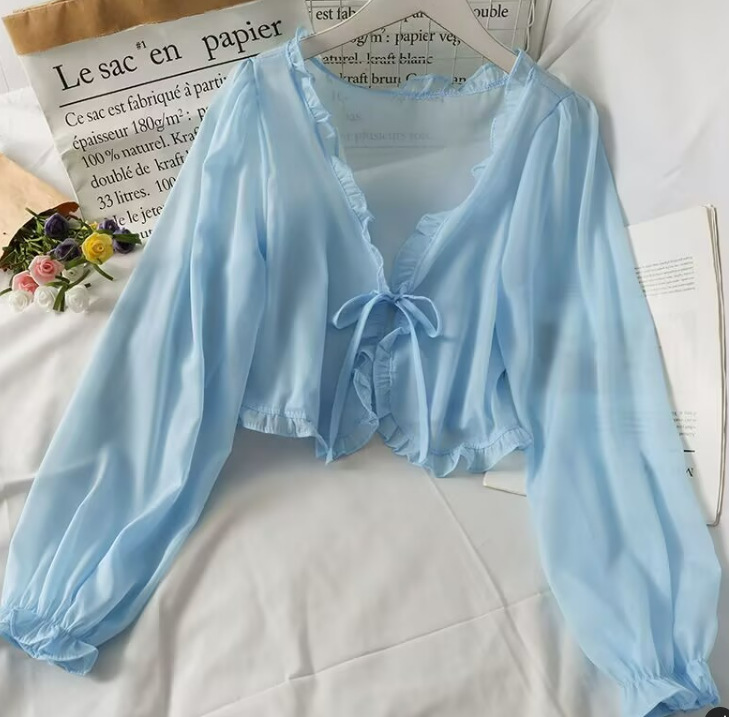 선스크린 카디건 여성용 얇은 작은 목도리 여름 슬링 원피스 오버 셔츠 블라우스 툴레 시폰 탑