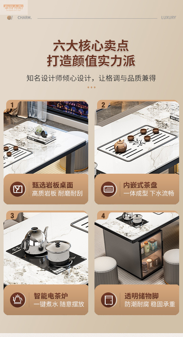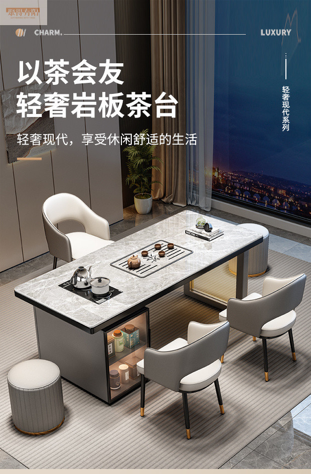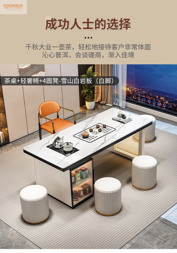 고급 인터넷 연예인 차 테이블 라이트 럭셔리 이탈리아 스타일 물 끓는 통합 암판 차 테이블 새로운 스타일의 차 테이블 차 테이블 및 의자 조합 세트스토어 가기