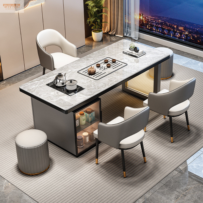 고급 인터넷 연예인 차 테이블 라이트 럭셔리 이탈리아 스타일 물 끓는 통합 암판 차 테이블 새로운 스타일의 차 테이블 차 테이블 및 의자 조합 세트