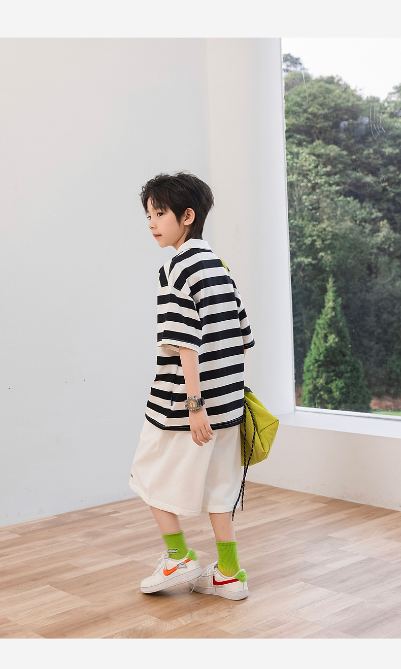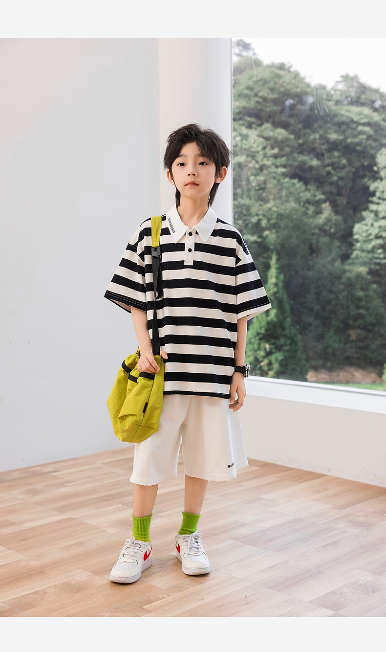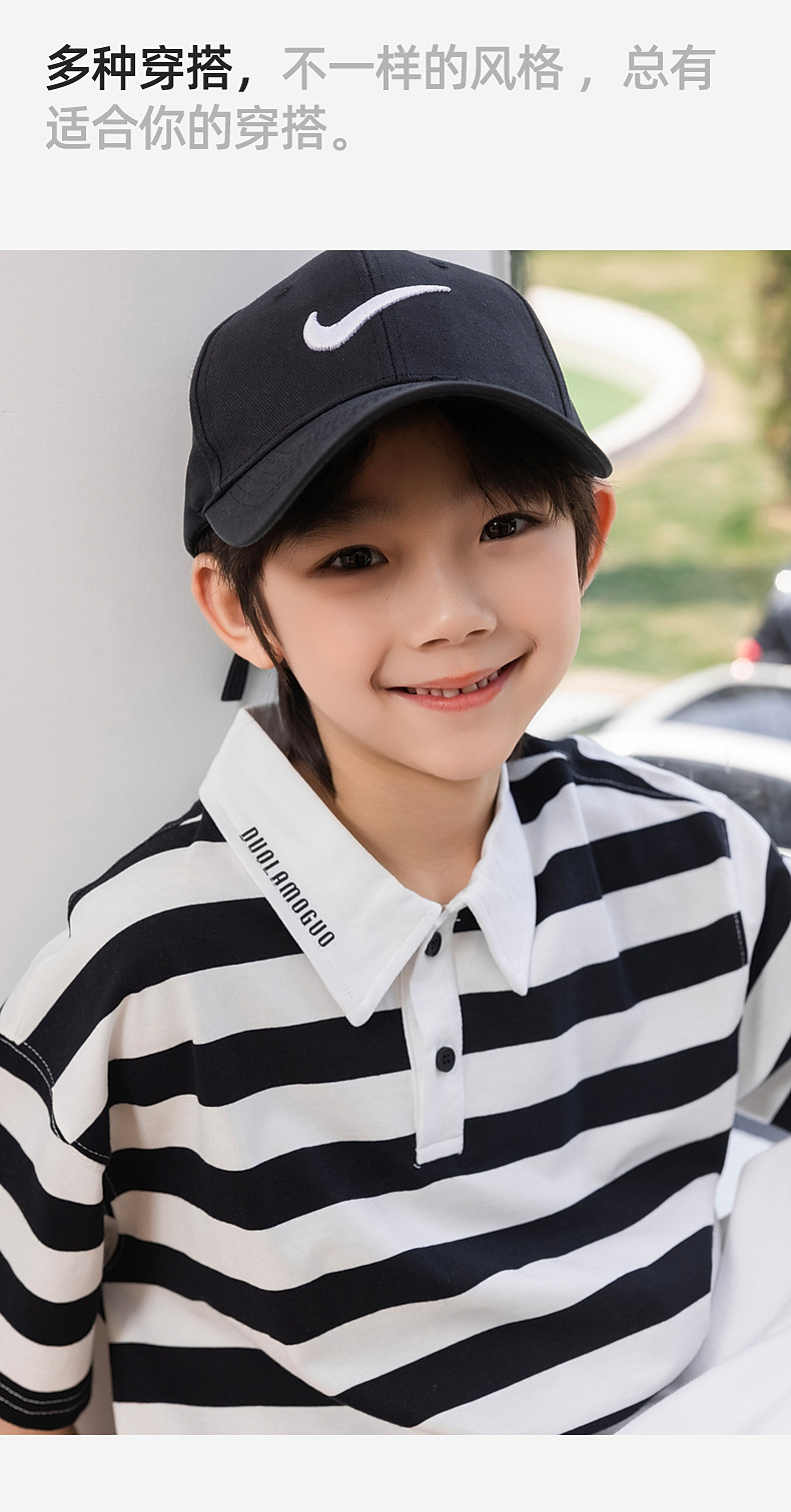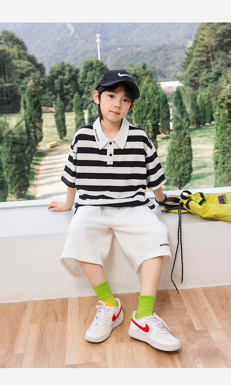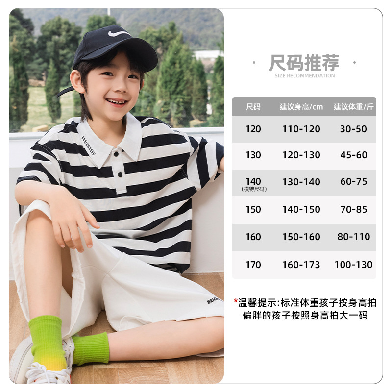 팬더 Yuanyuan 여름 어린이 줄무늬 POLO 셔츠 2025 여름 새 소년 반팔 티셔츠 공장 도매