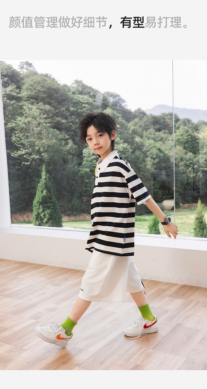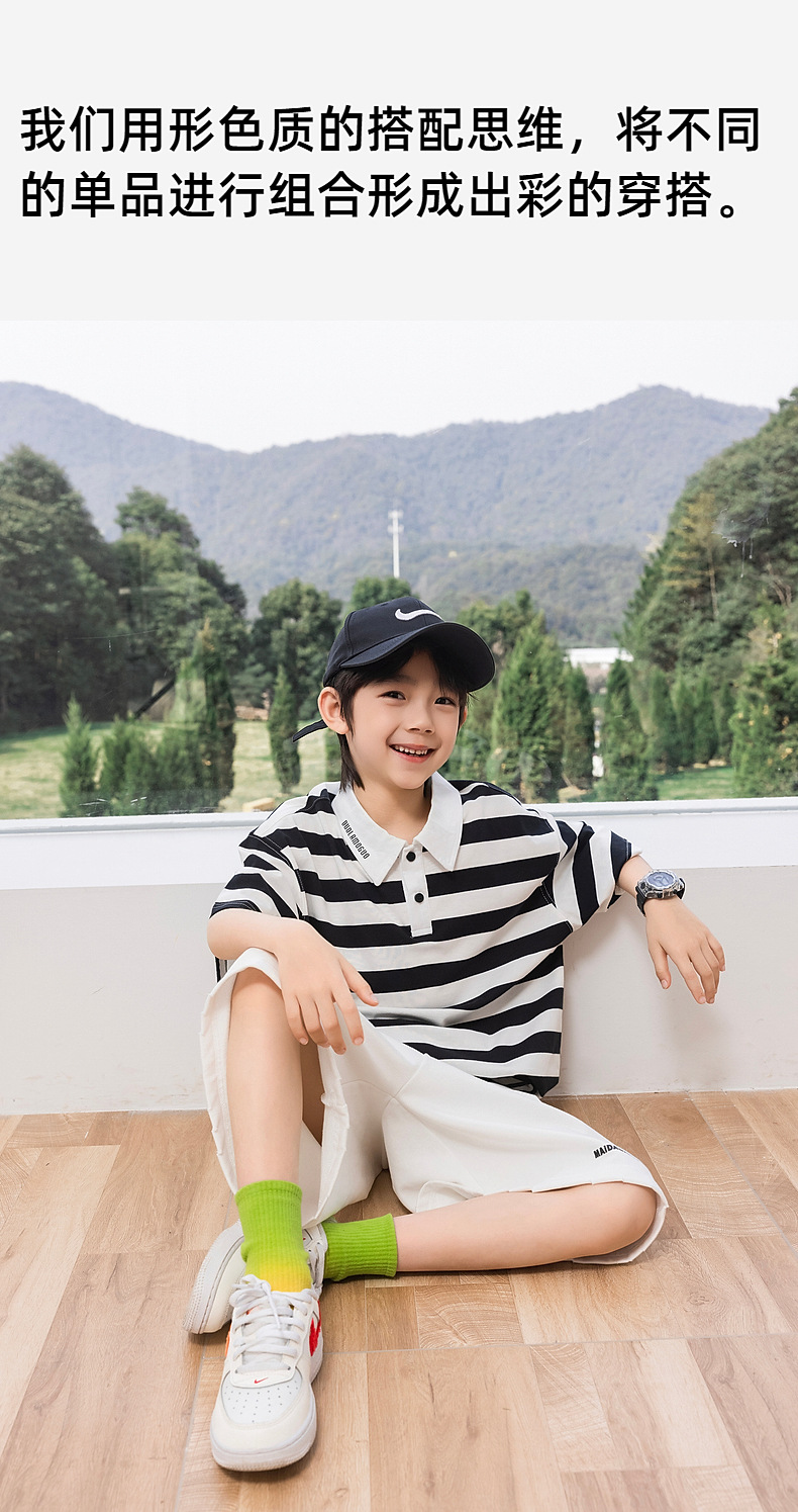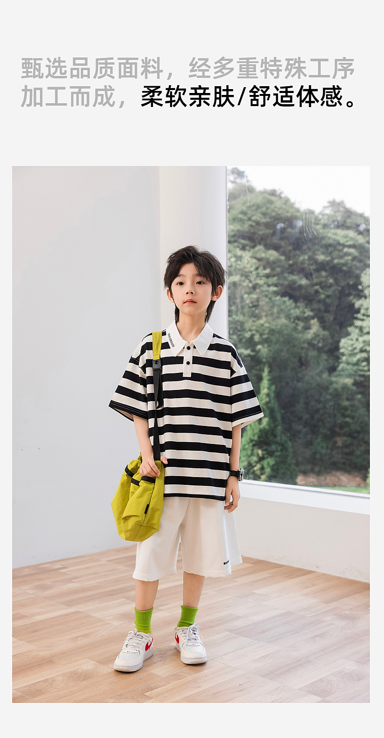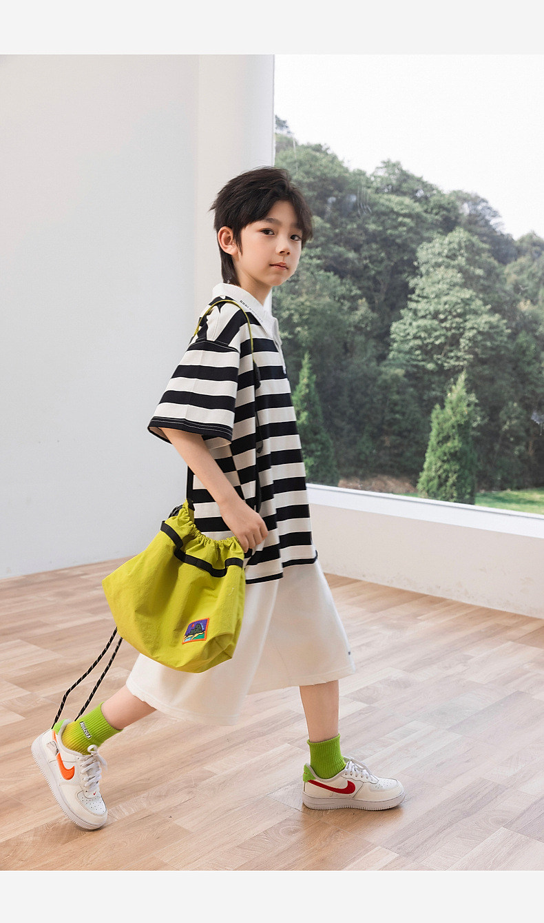 팬더 Yuanyuan 여름 어린이 줄무늬 POLO 셔츠 2025 여름 새 소년 반팔 티셔츠 공장 도매