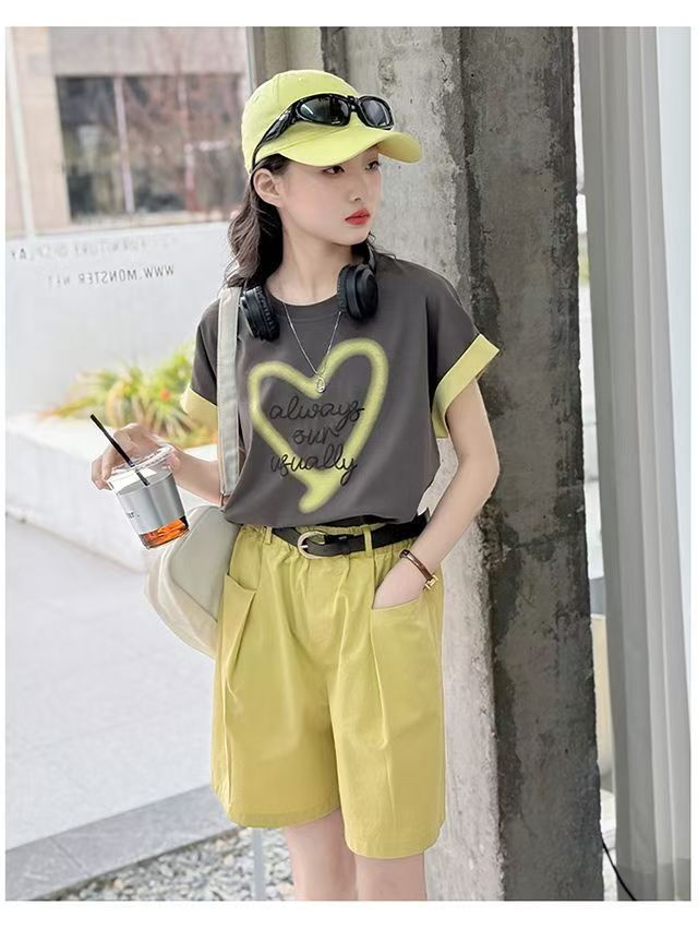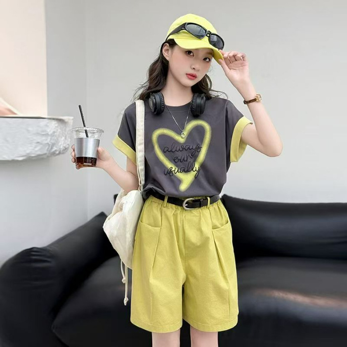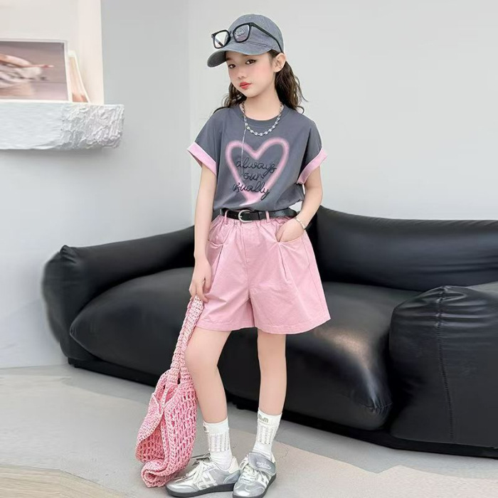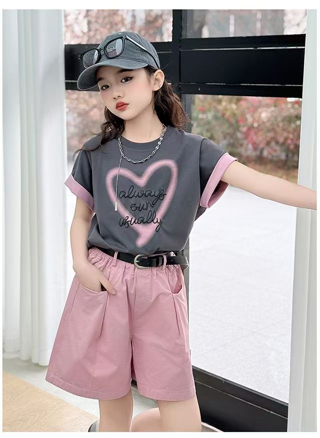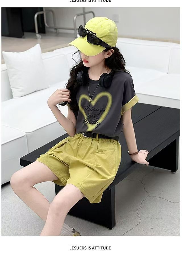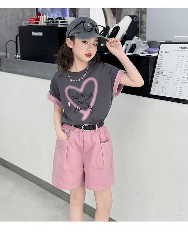 소녀 여름 세트 2025 새로운 패션 캐주얼 소녀 여름 얇은 반팔 두 조각 유행 세트