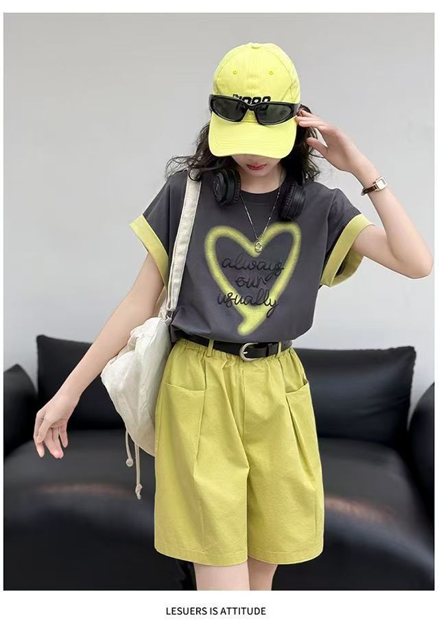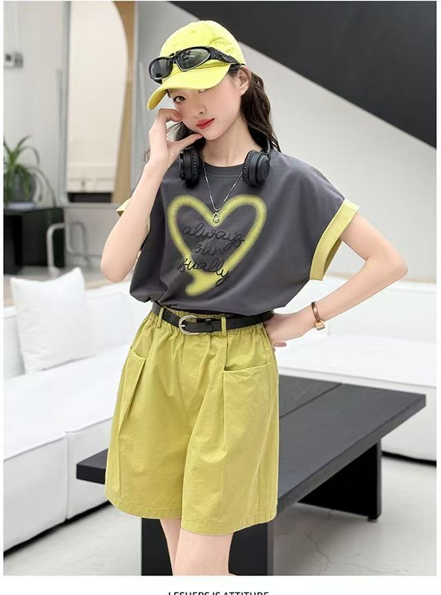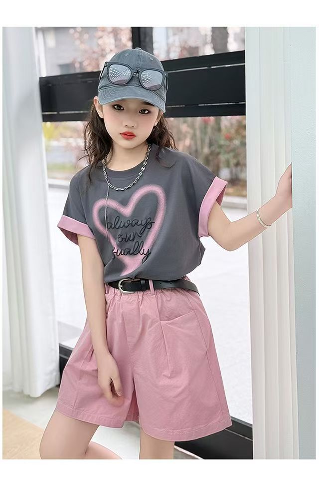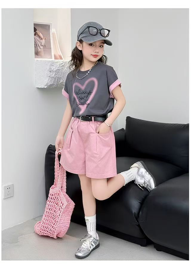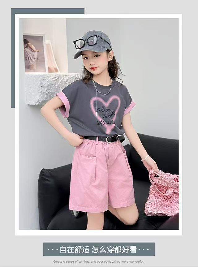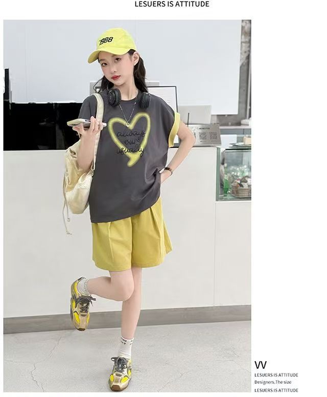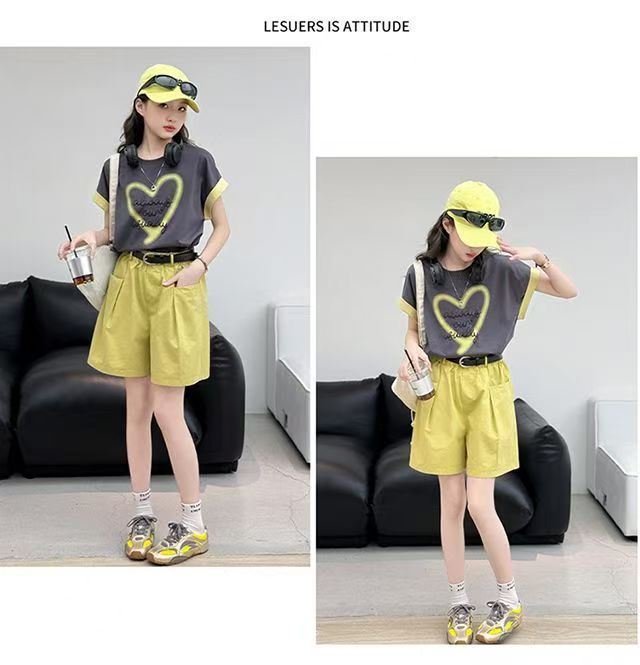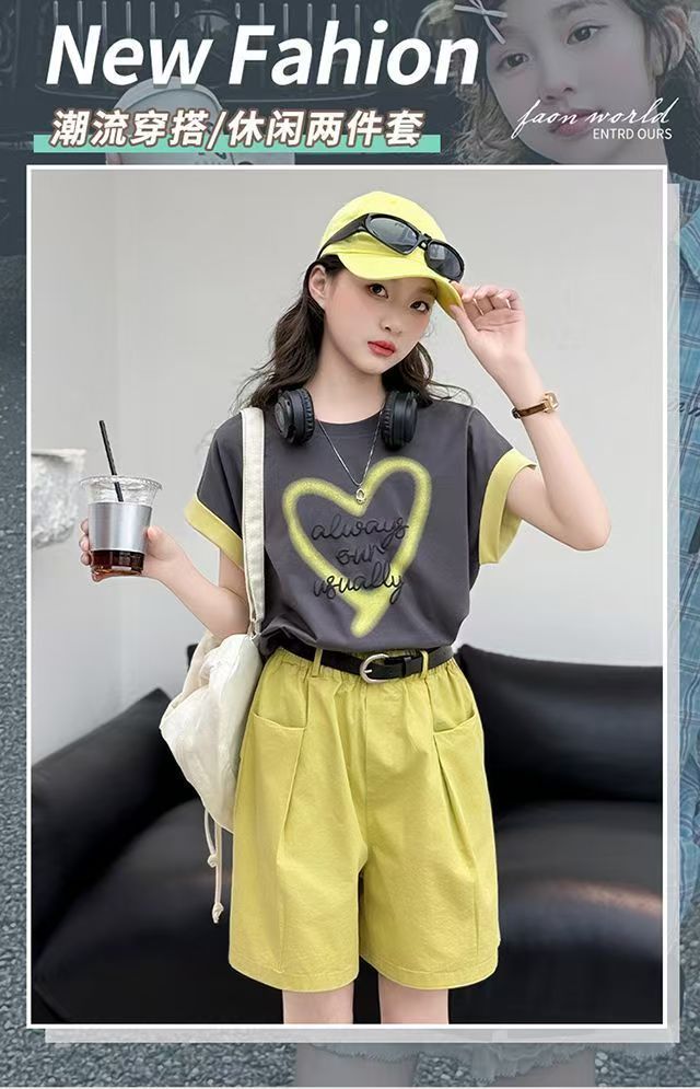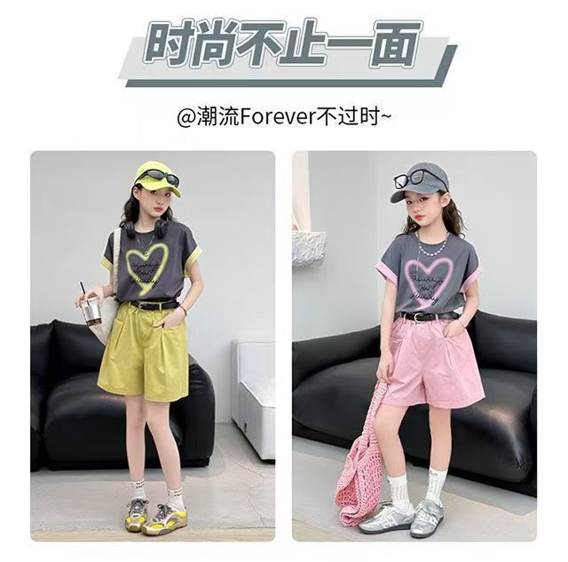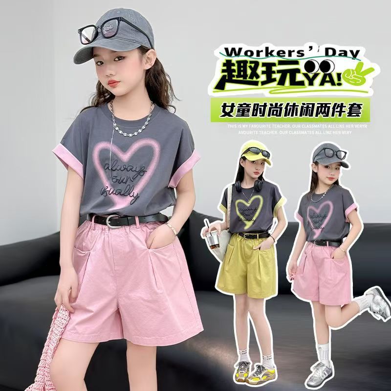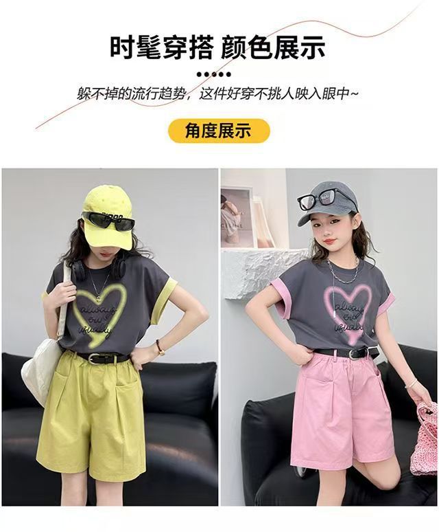 소녀 여름 세트 2025 새로운 패션 캐주얼 소녀 여름 얇은 반팔 두 조각 유행 세트스토어 가기