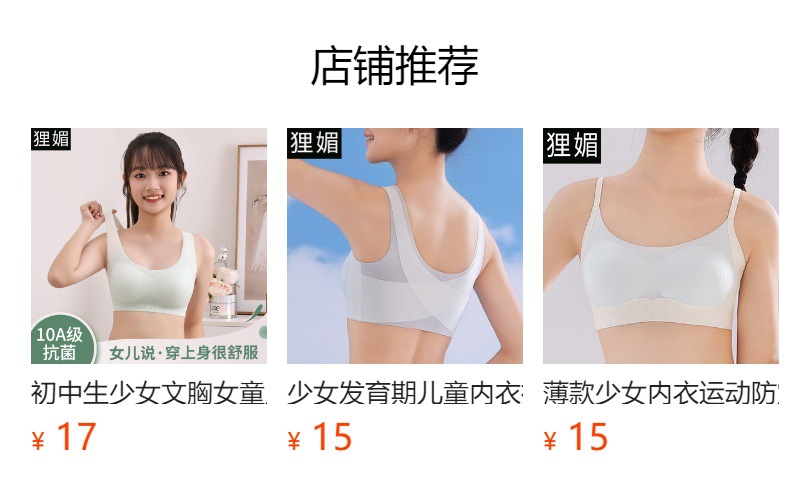 여아 속옷 발달 2단계 중학생, 중년 이상 여아 사춘기 심리스 스포츠 조끼 브라스토어 가기