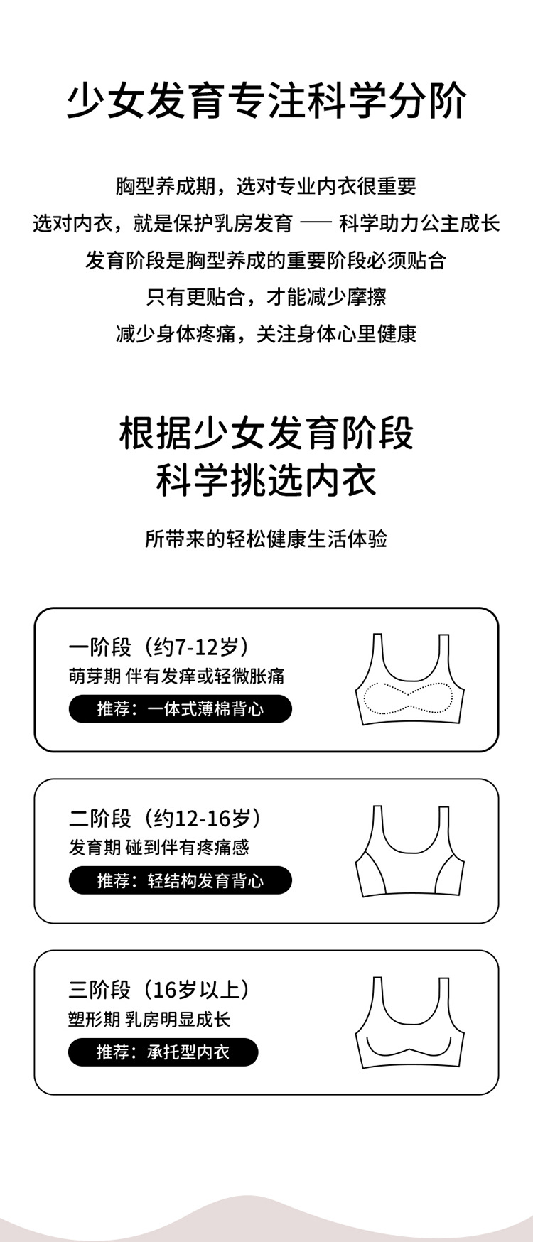 여아 속옷 발달 2단계 중학생, 중년 이상 여아 사춘기 심리스 스포츠 조끼 브라