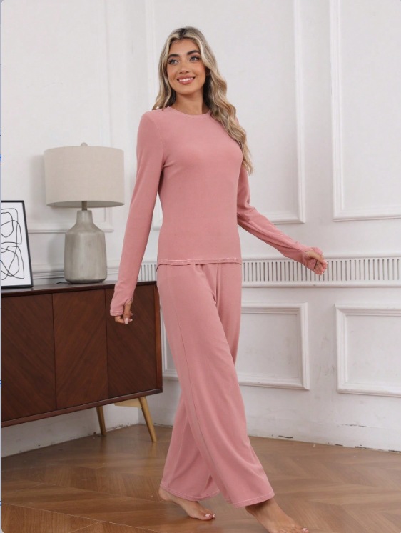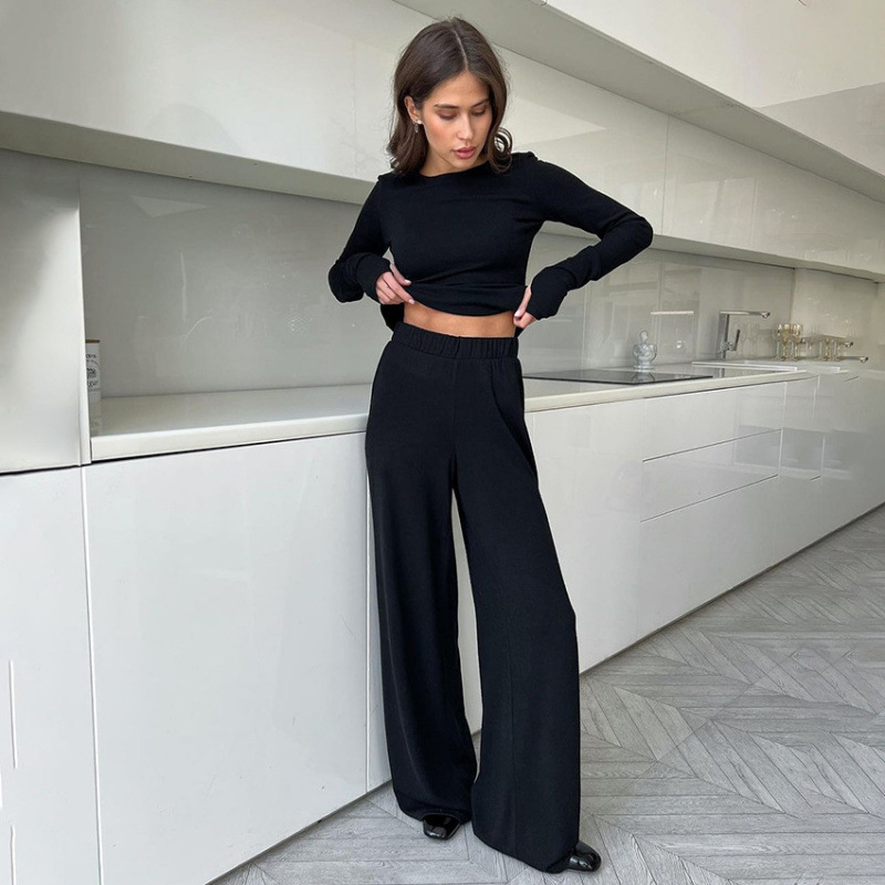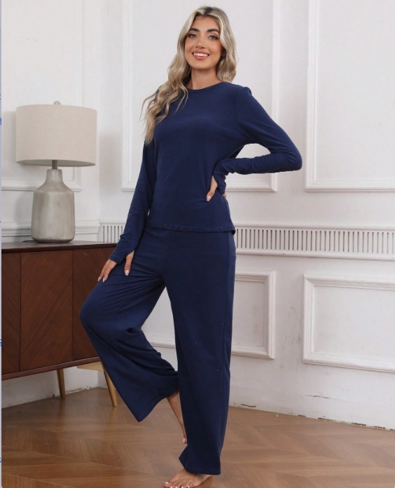 2025년 봄 유럽 및 미국 스타일 블랙 밀크 실크 라운드넥 여성 홈웨어 신축성 있는 잠옷 투피스 세트스토어 가기