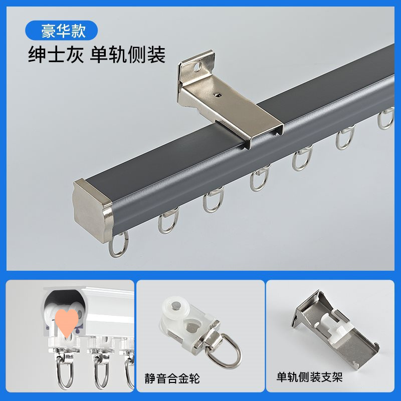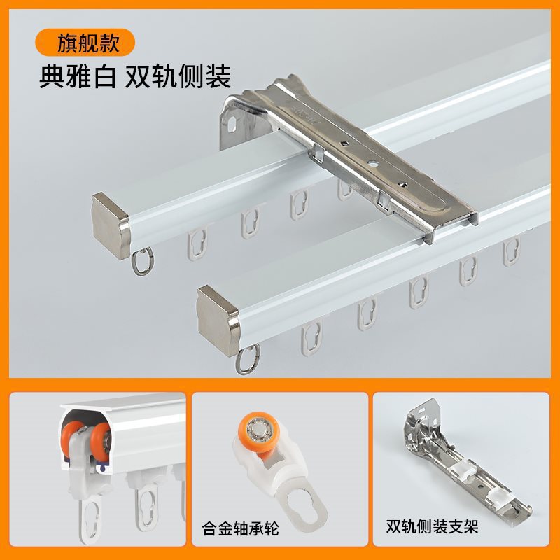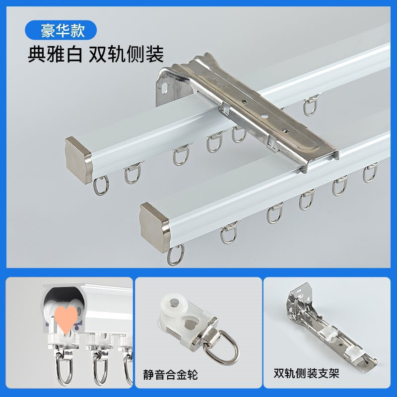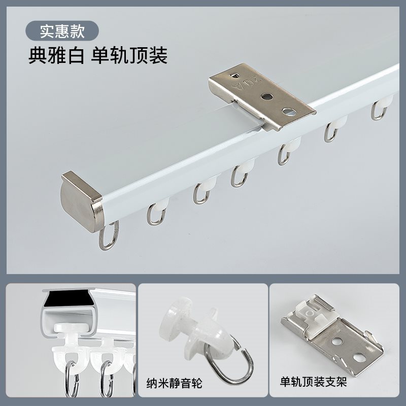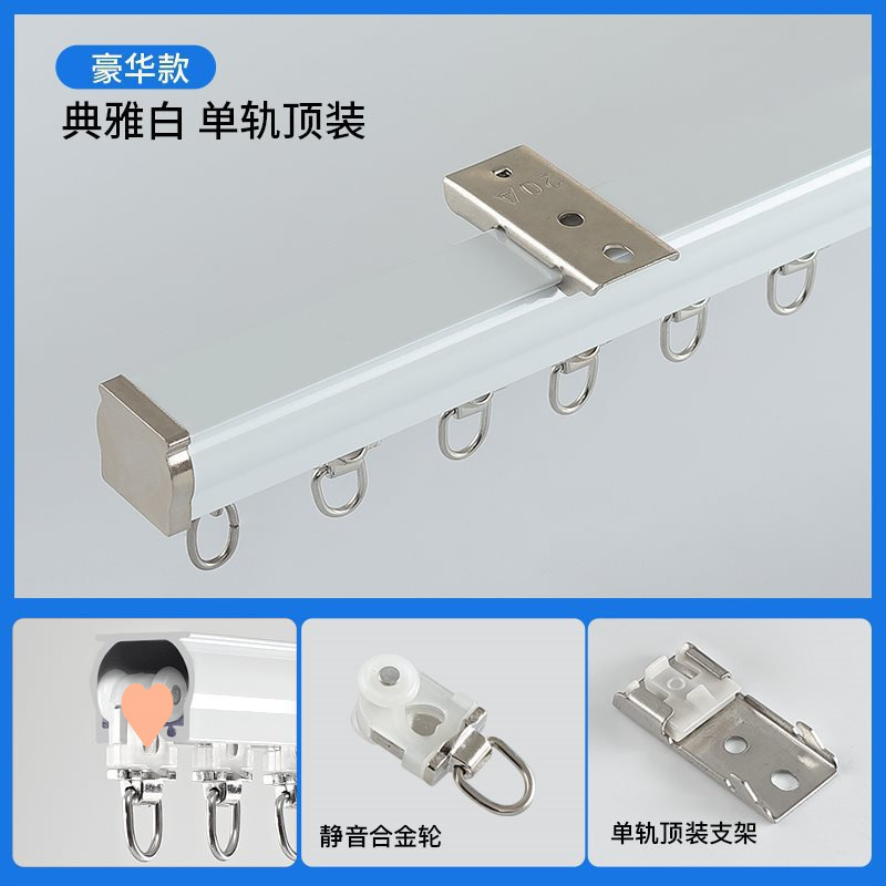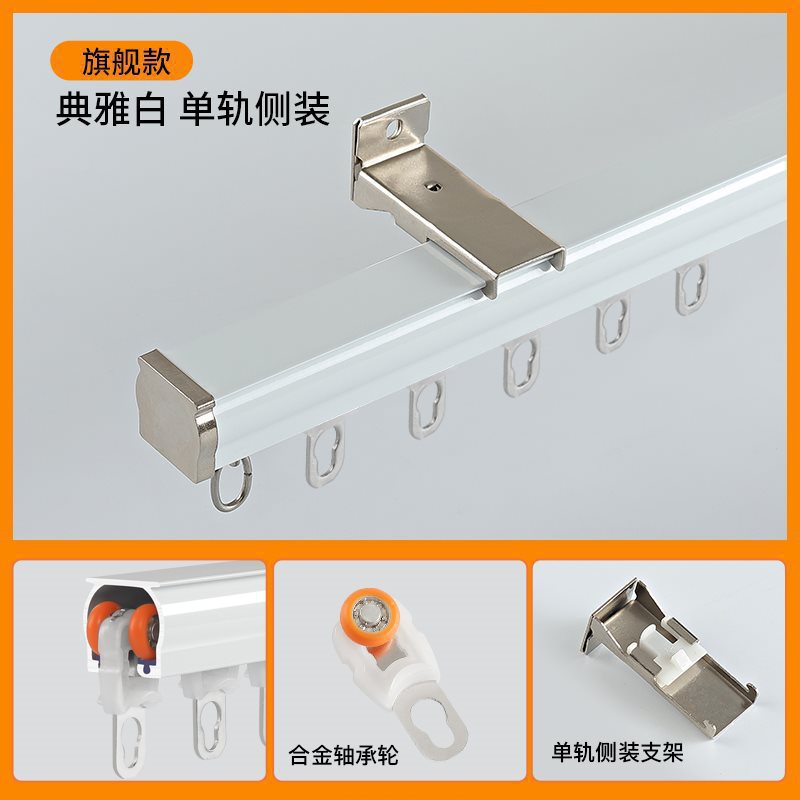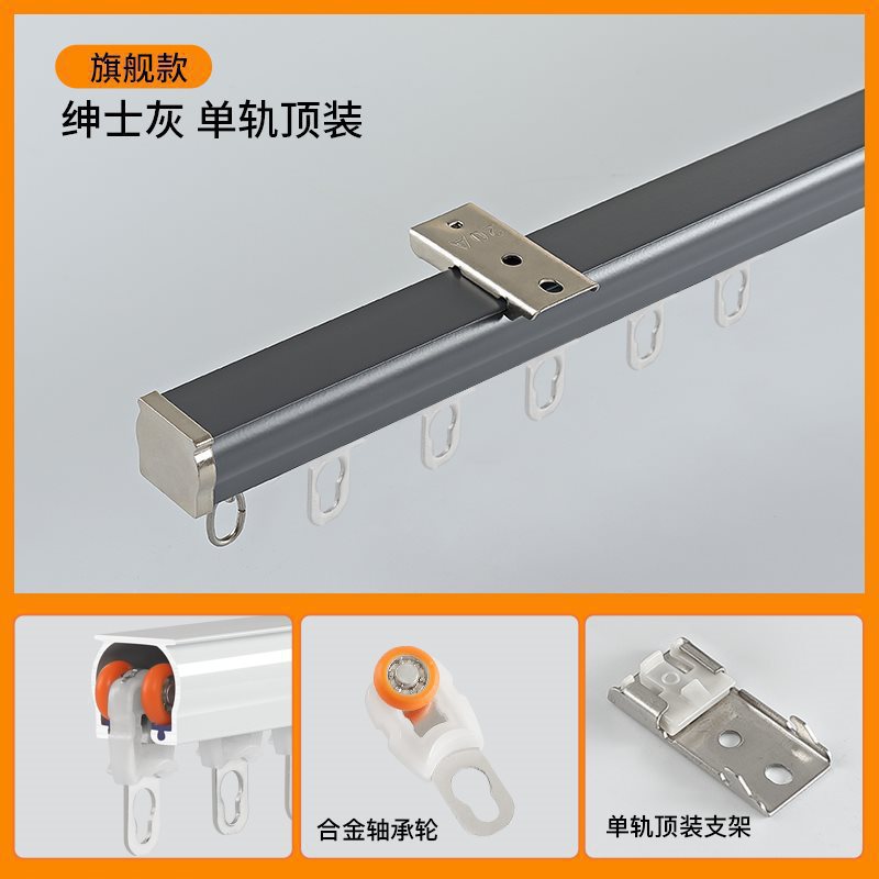 베어링 휠 무소음 알루미늄 합금 커튼 트랙 슬라이드 레일 풀리 탑 마운트 측면 장착 레일 커튼 레일 단일 트랙 이중 직선 레일스토어 가기
