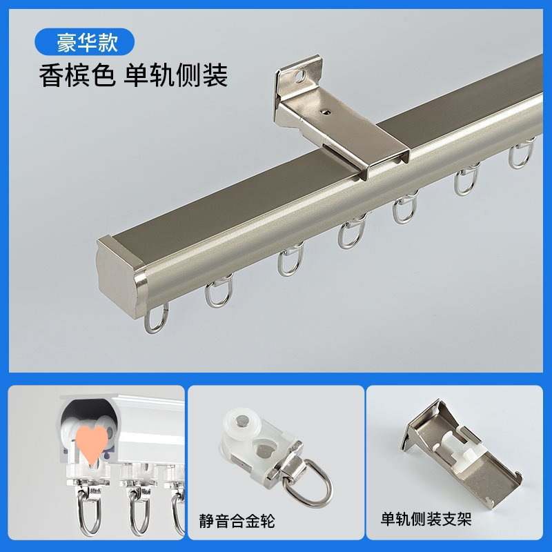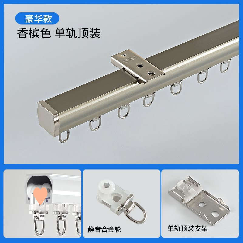 베어링 휠 무소음 알루미늄 합금 커튼 트랙 슬라이드 레일 풀리 탑 마운트 측면 장착 레일 커튼 레일 단일 트랙 이중 직선 레일