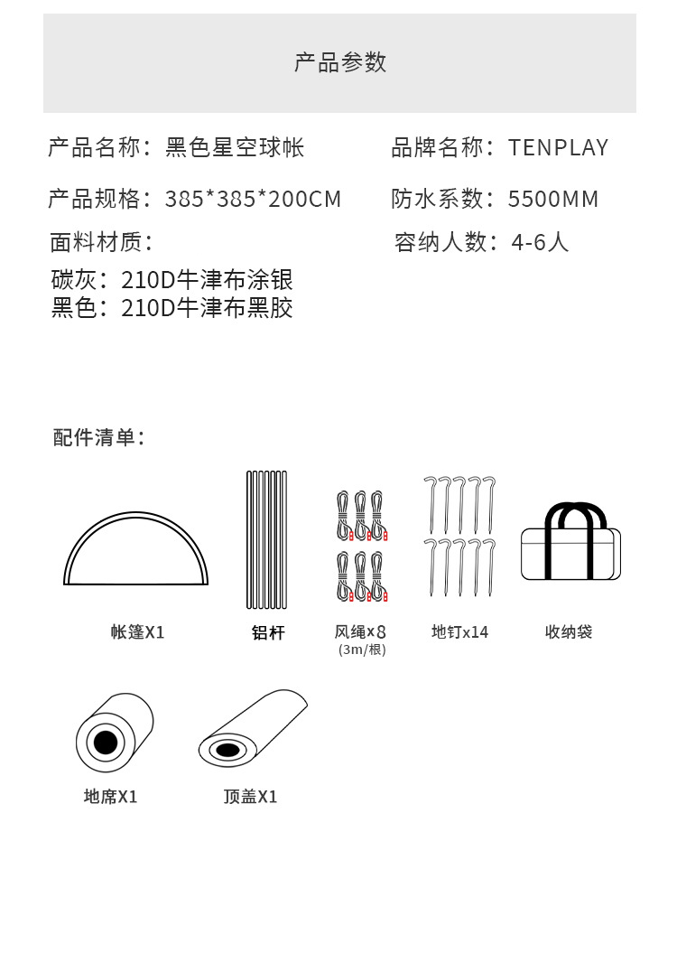 • 210D 옥스포드 천 검정 비닐 385*385*200CM