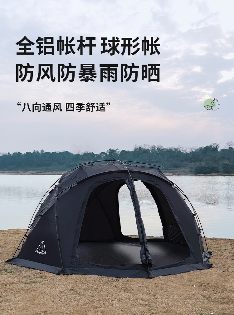 맞춤형 Ningbo 캠핑 두꺼운 방수 및 자외선 차단제 더블 레이어 캠핑 대형 텐트 비닐 야외 구형 텐트 처리