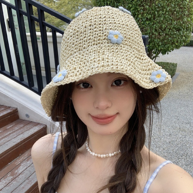 여름 데이지 꽃 밀짚 모자 어부 모자 통기성 휴가 해변 신선한 태양 보호 태양 모자 여성 국화스토어 가기