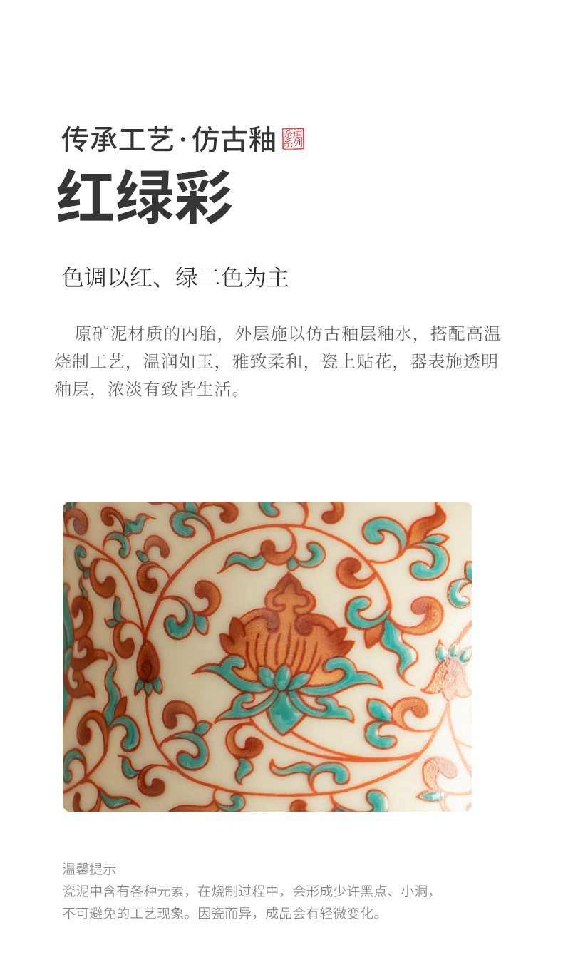 • 골동품 도자기 - 붉은색과 녹색의 연꽃 문양이 있는 대형 화분(간단한 장식)