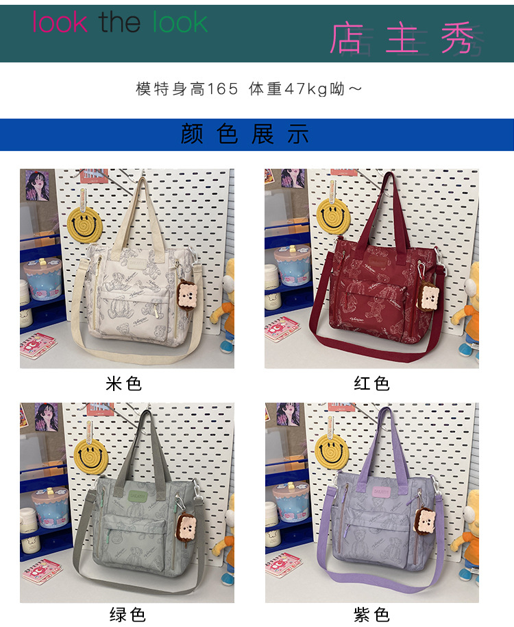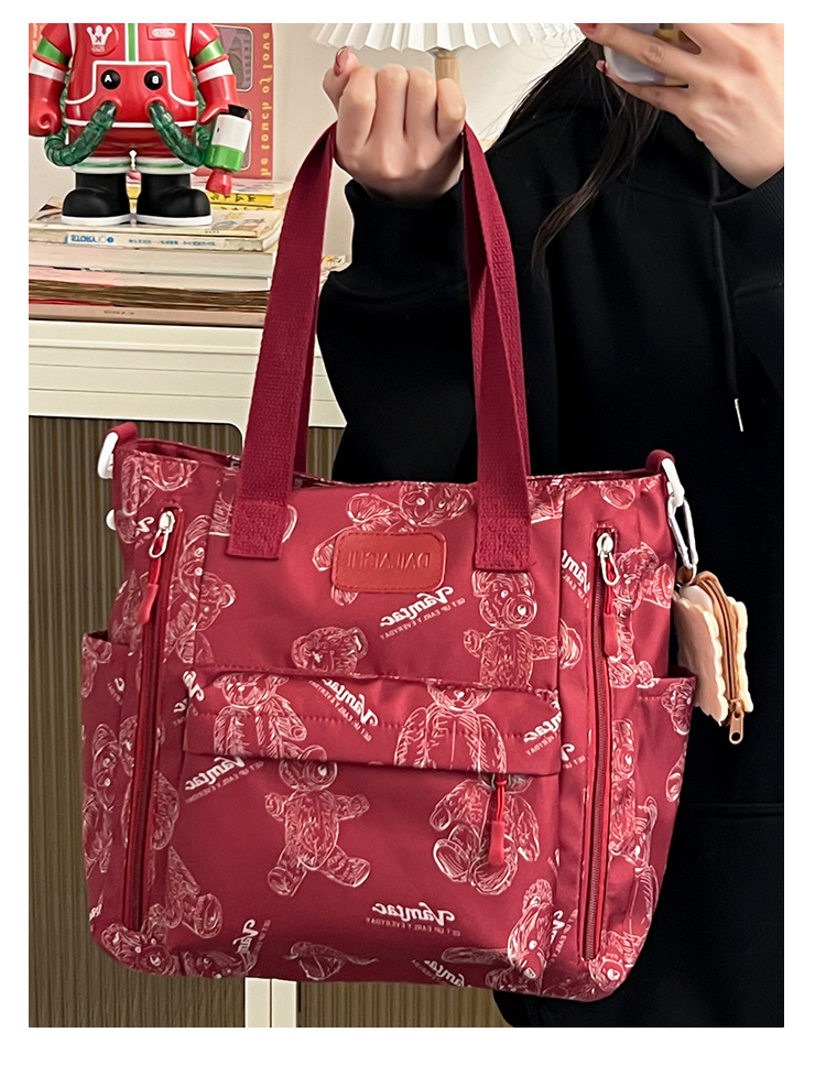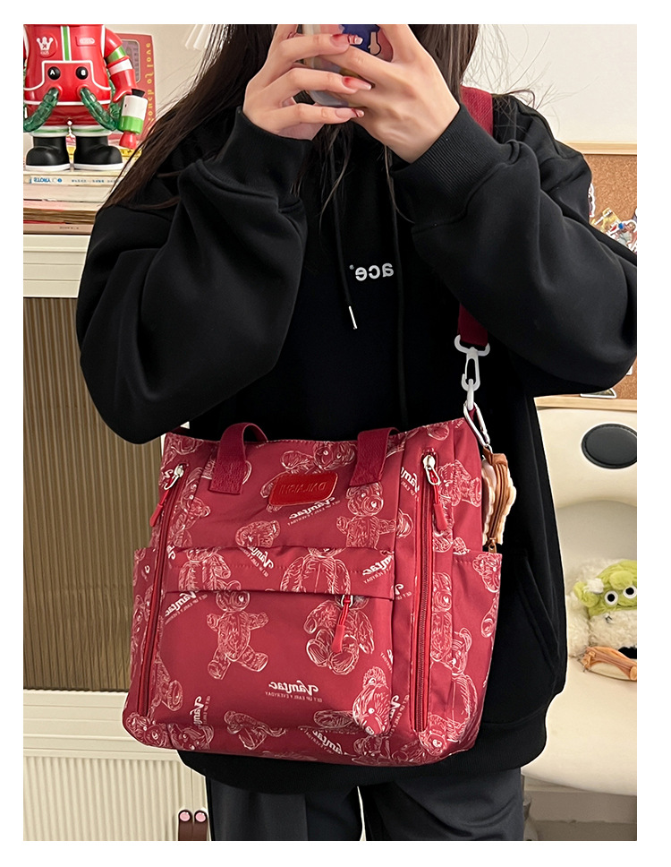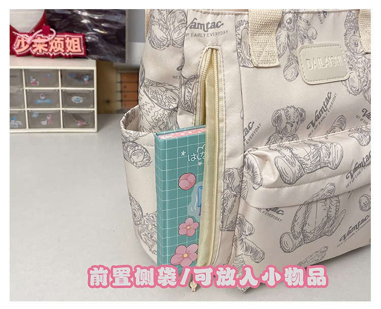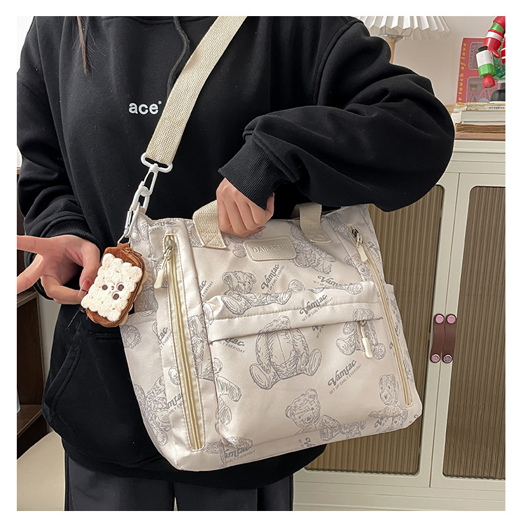 2024 새로운 대용량 통근 숄더백 베어 레트로 토트 백 학생 클래스 과외 가방 크로스 바디 백스토어 가기