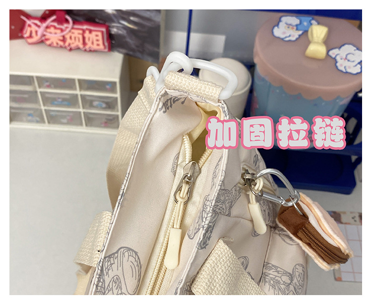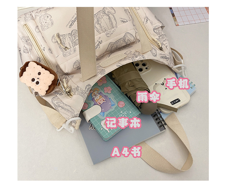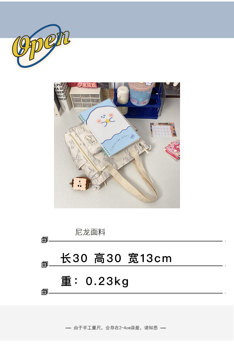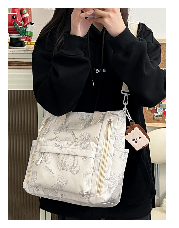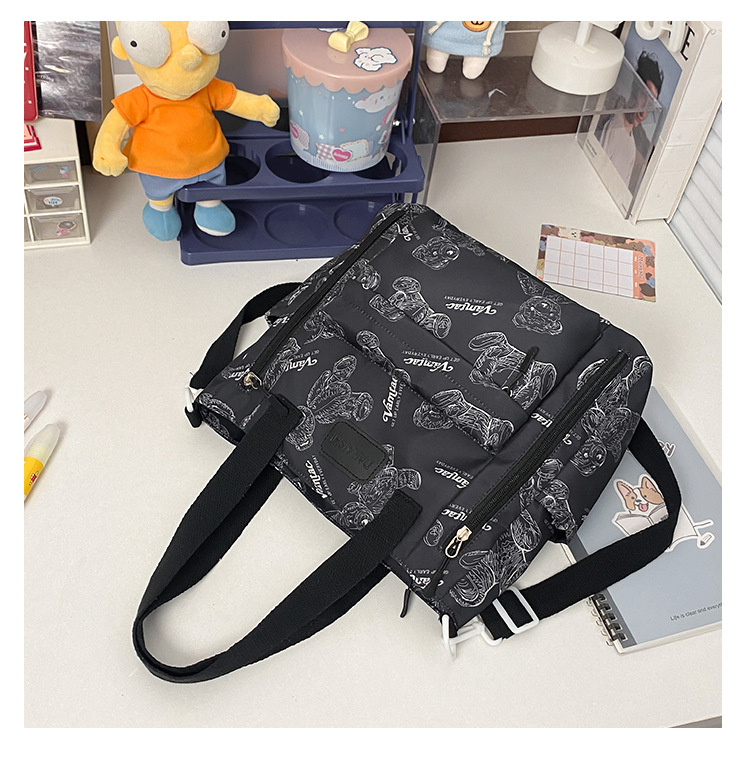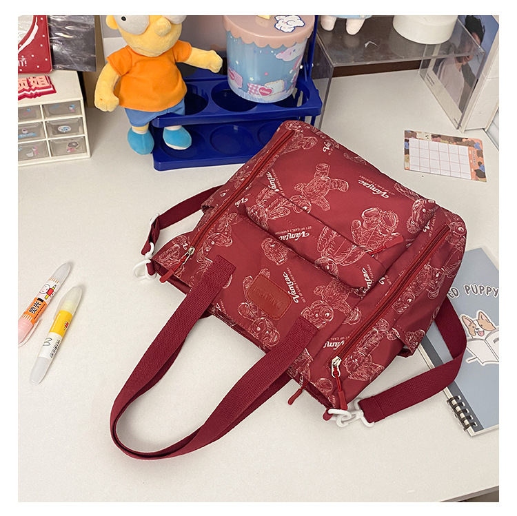 2024 새로운 대용량 통근 숄더백 베어 레트로 토트 백 학생 클래스 과외 가방 크로스 바디 백스토어 가기