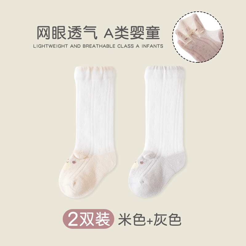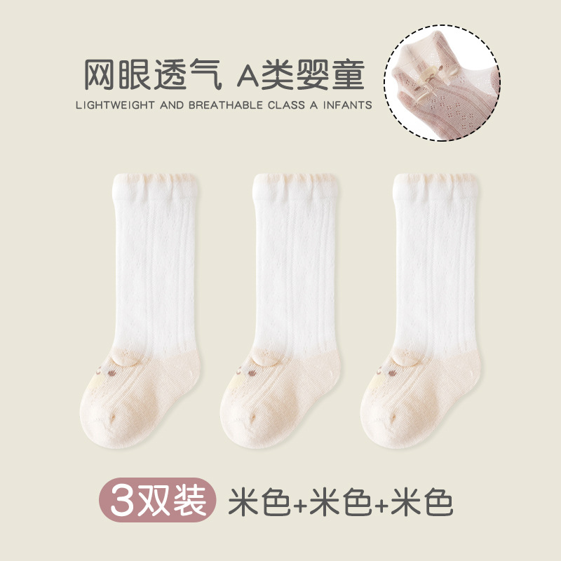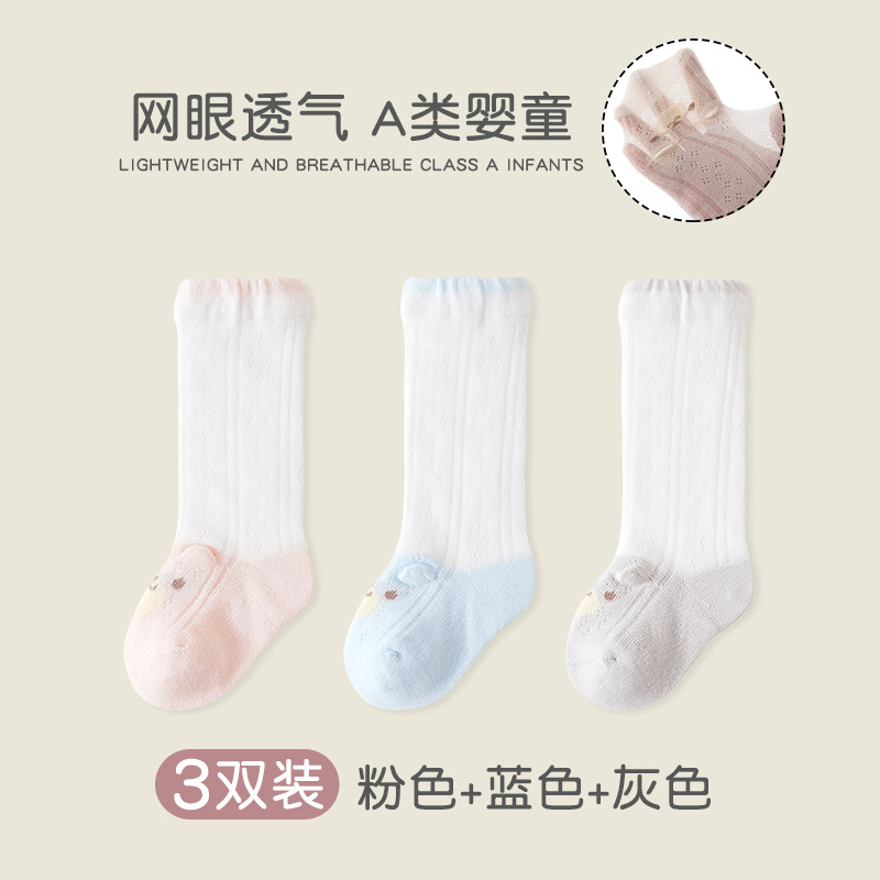 어린이 양말 여성 메쉬 통기성 클래스 A 빗질면 뼈없는 양말 신생아 귀여운 곰 단색 중간 튜브 양말스토어 가기