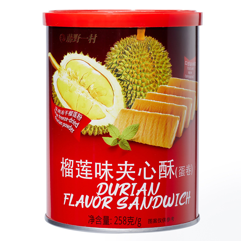후지노 이무라 두리안맛 샌드위치 계란말이 비스킷 오피스 캐주얼 스낵 계란말이 스낵 캔 258g스토어 가기