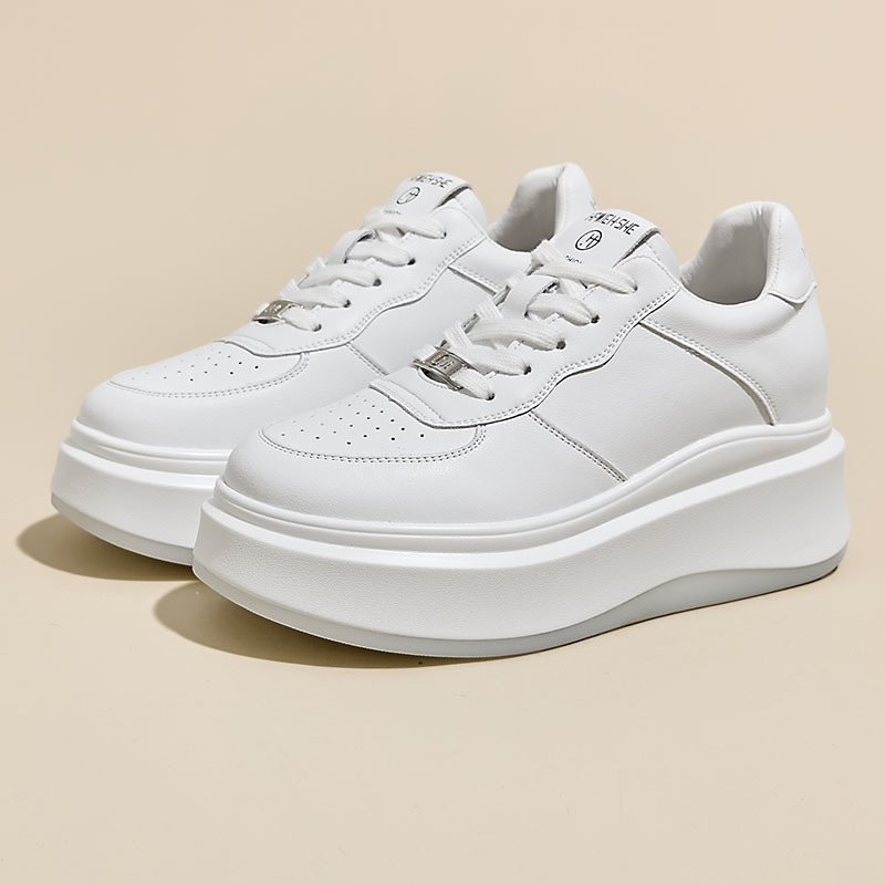 내부 높이 증가 2025 봄 신상 두꺼운 밑창 신발 스포츠 및 레저 다용도 여성 신발 싱글 신발 내부 높이 증가 흰색 신발스토어 가기