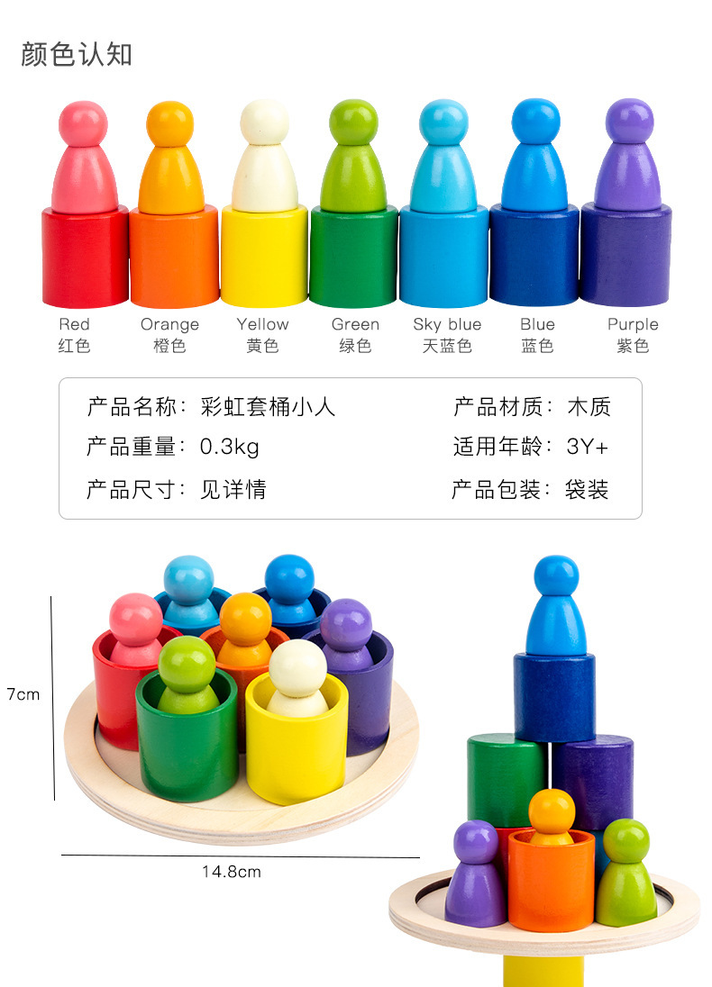 Weiwihu 레인보우 하우스 악당 세트 버킷 DIY 특수 모양의 Jenga 어린이 조립 나무 조기 교육 빌딩 블록 장난감스토어 가기