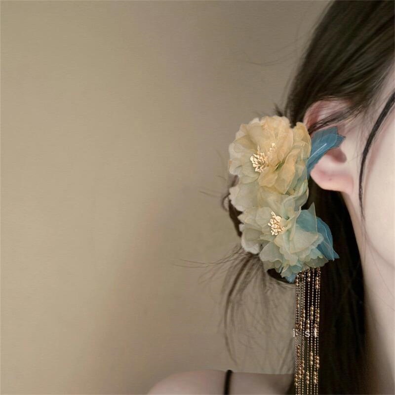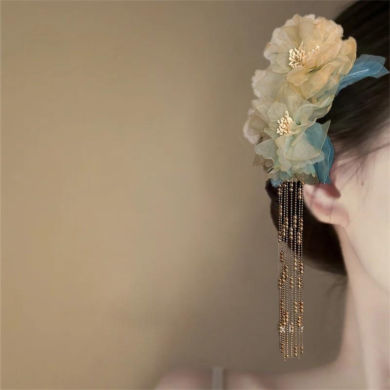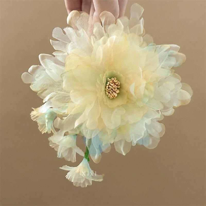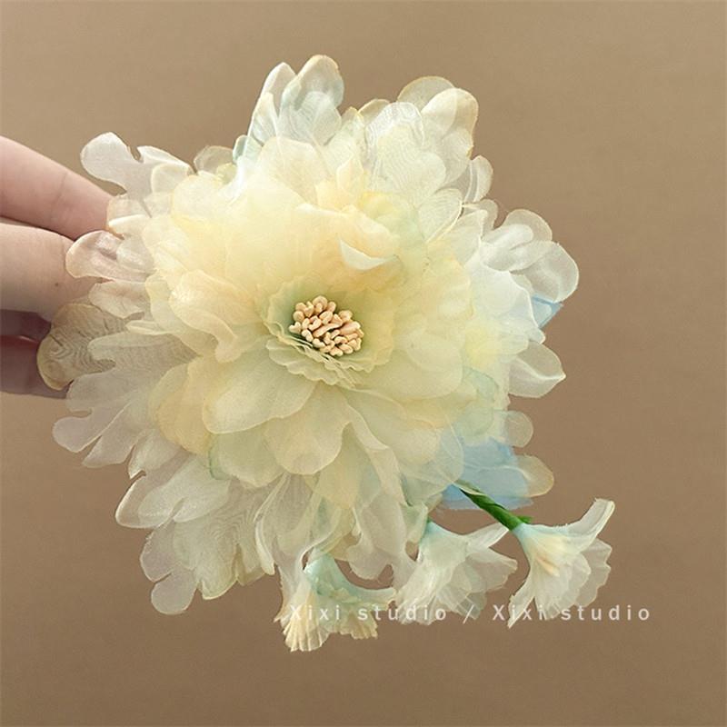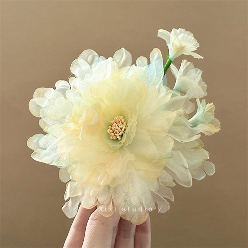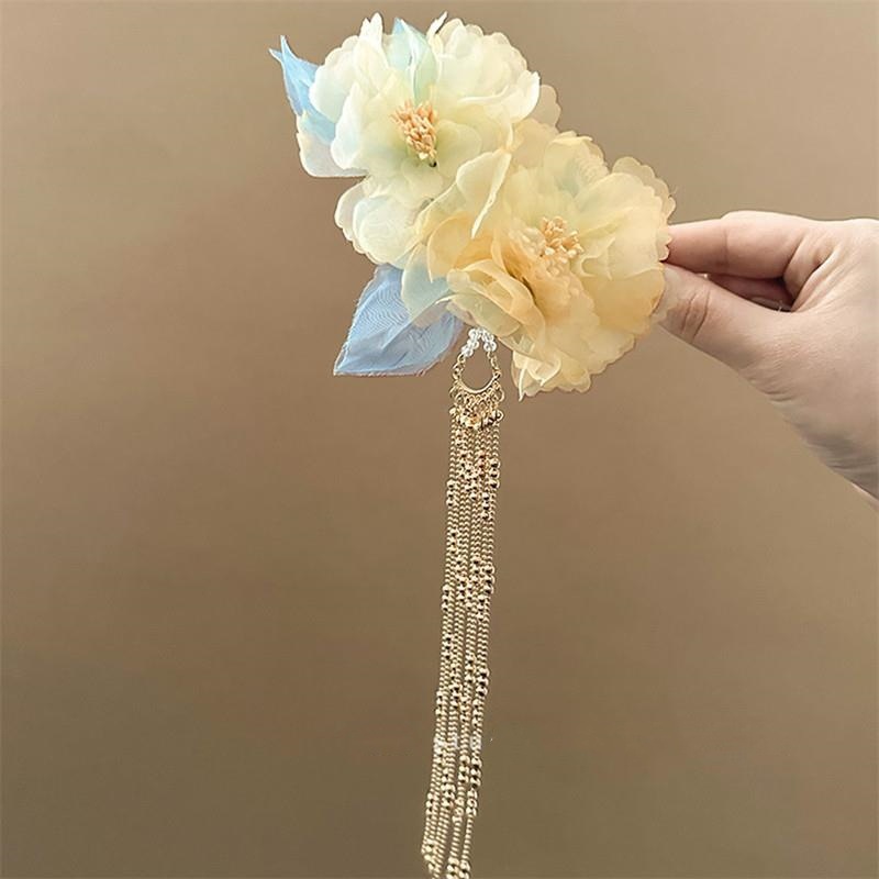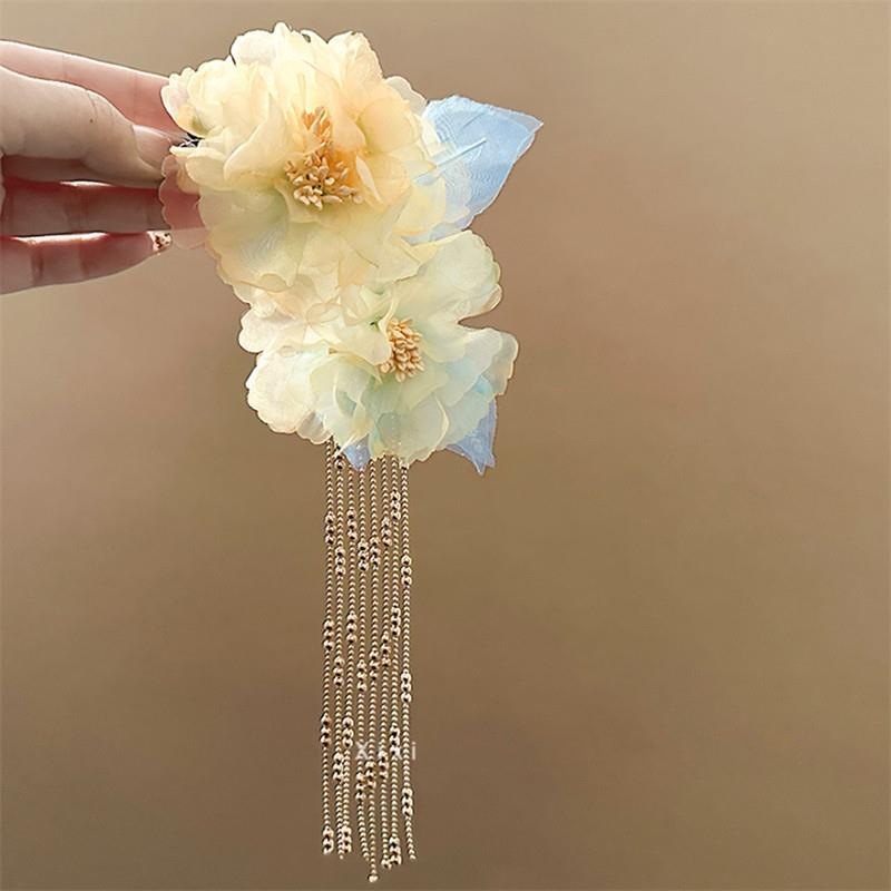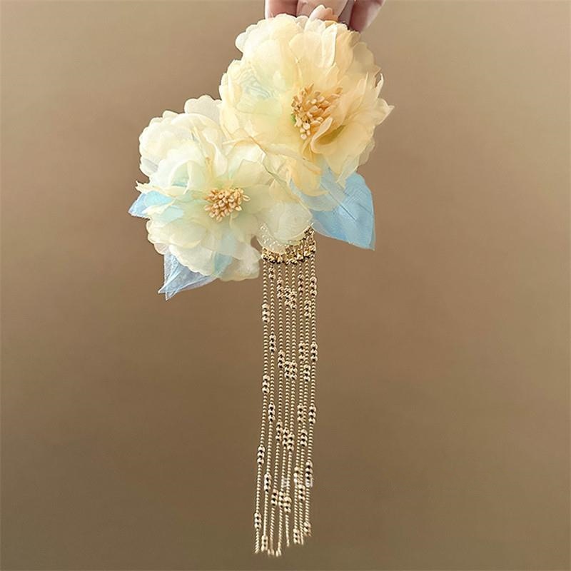 강남 그리기! 노란 모란 머리핀! 작은 신선한 뜨거운 꽃 가장자리 클립 중국 의류 술 머리 장식 헤어 액세서리