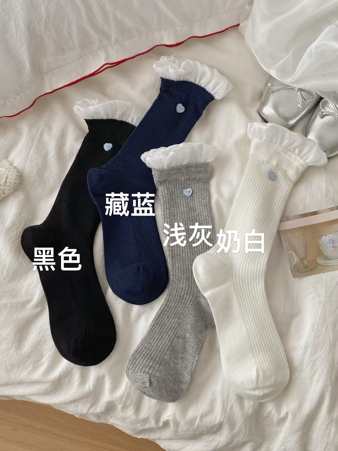 袜子女秋冬ins拼接格子木耳边堆堆袜女棉韩系无骨微压中筒袜女袜 RMB:4.00