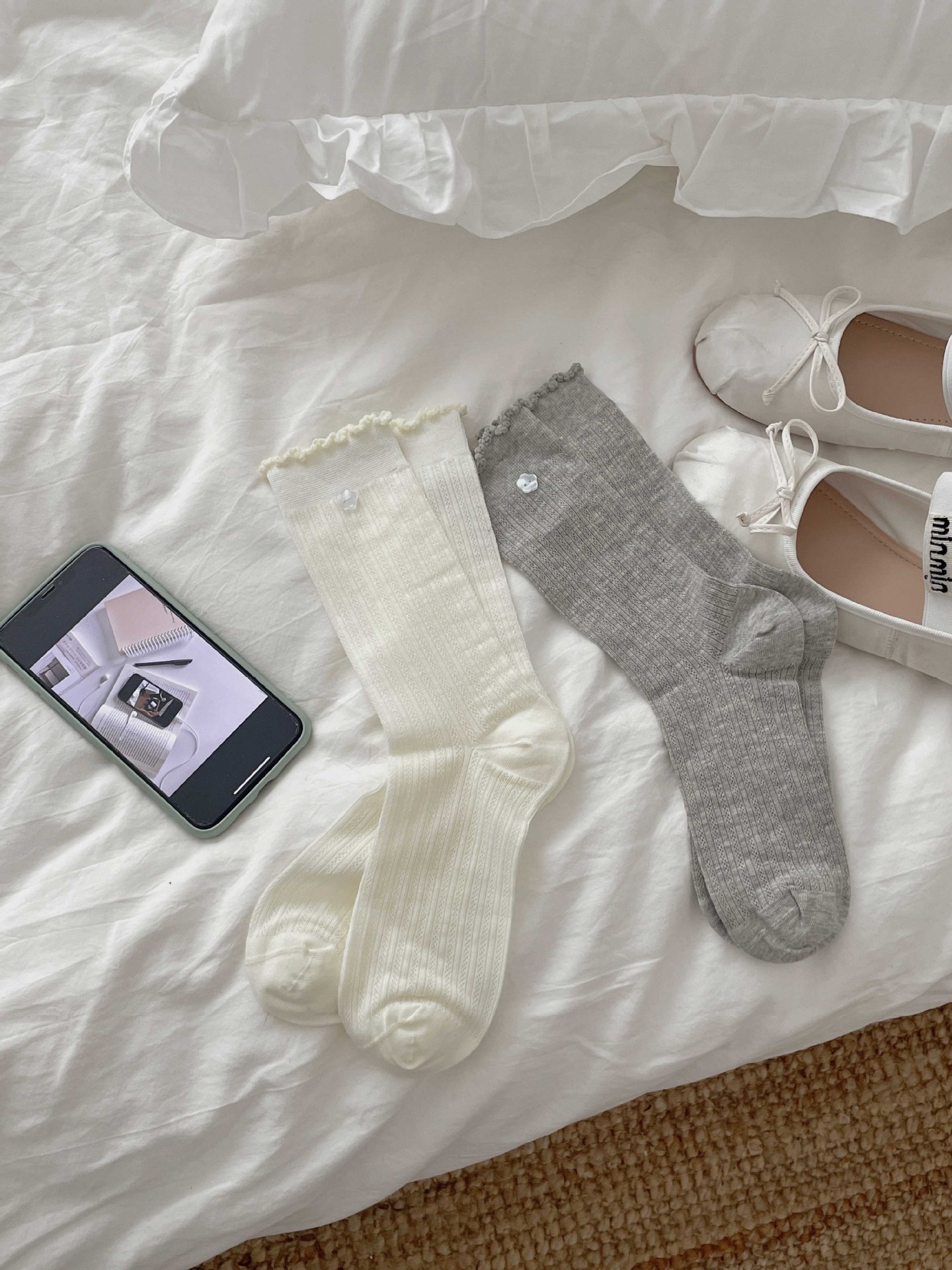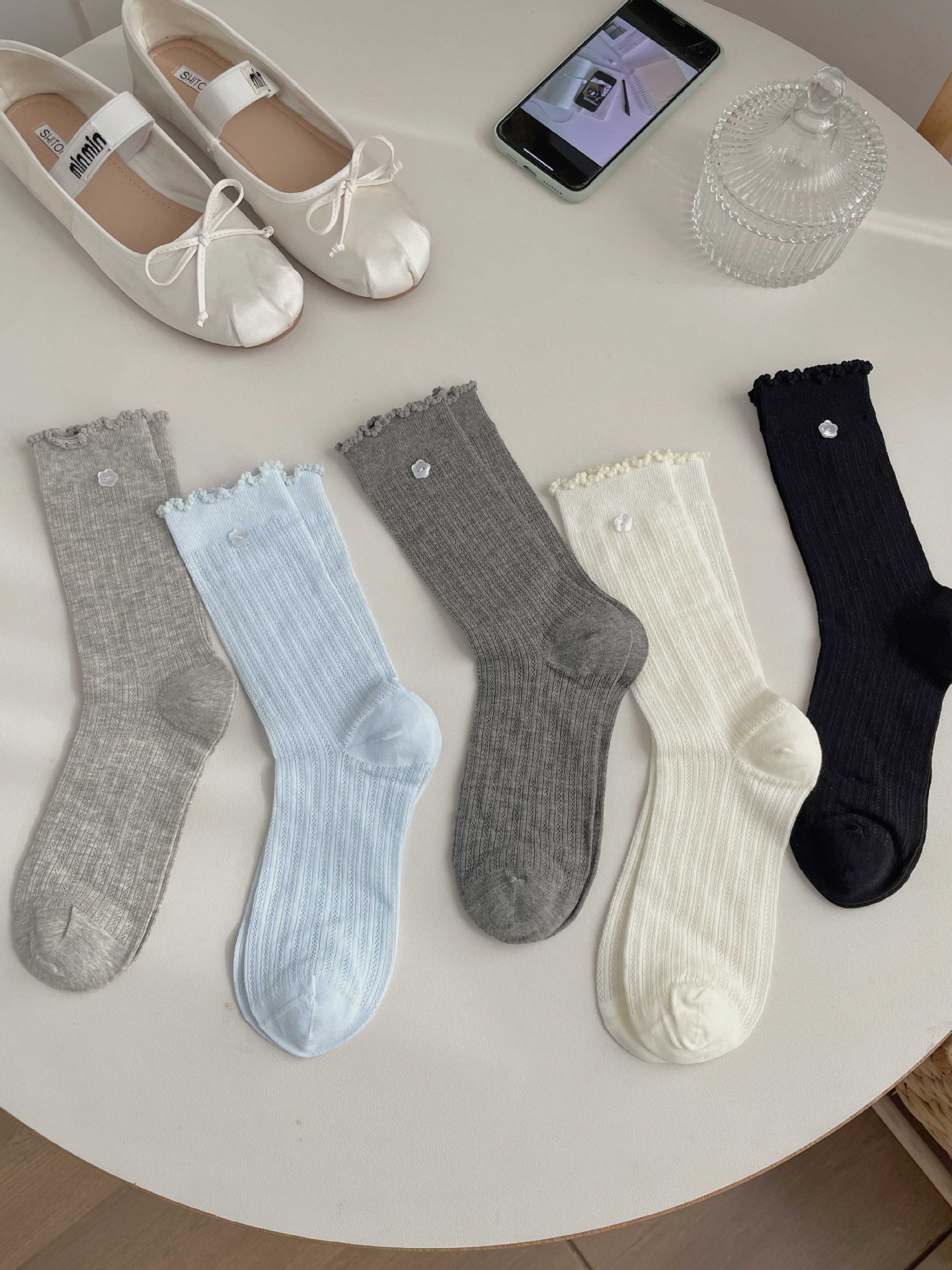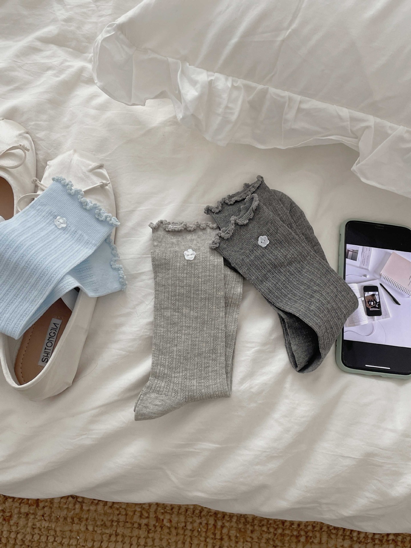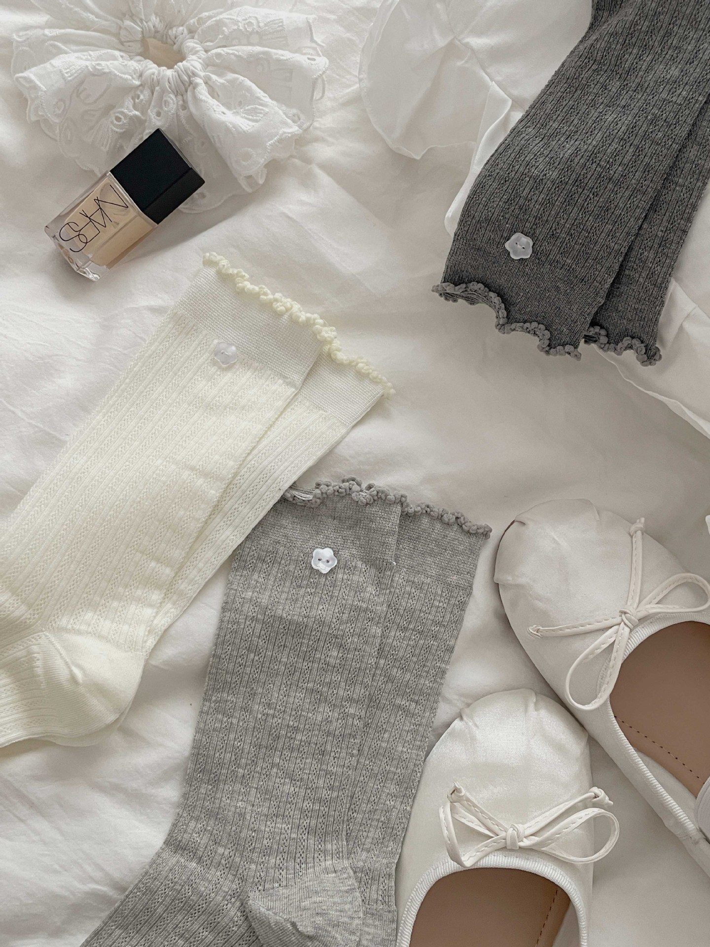 秋冬新品songmu韩国ins灰色丝绒蝴蝶结雪花百搭潮袜棉无骨中筒袜 RMB:4.60