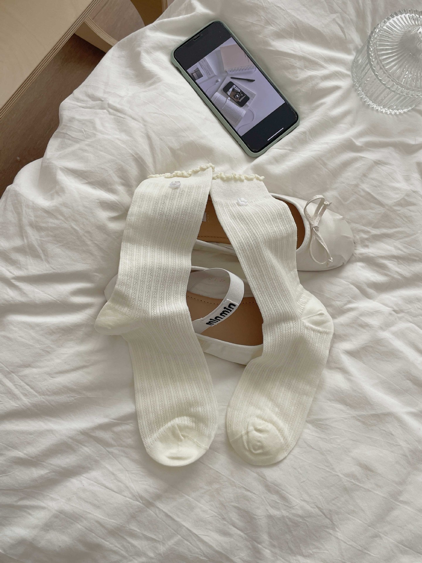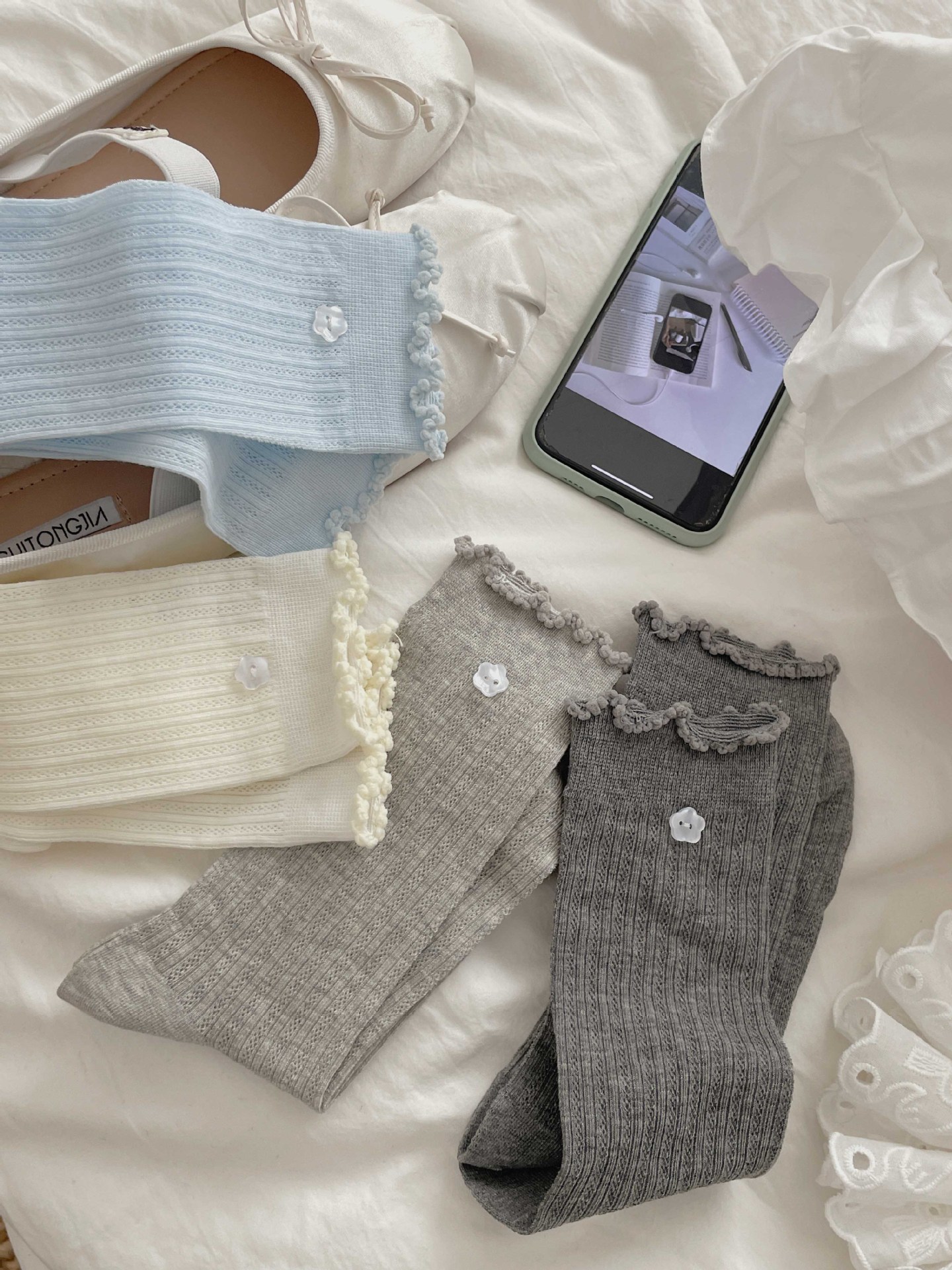 봄과 여름 한국식 스 트리머 양말 꽃 봉오리 사랑 귀여운 미드 튜브 양말 올인원 뼈없는 빗질 코튼 스태킹 양말