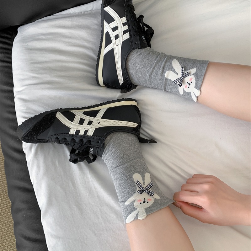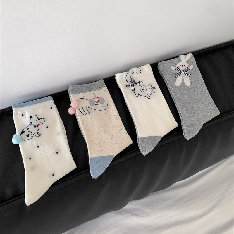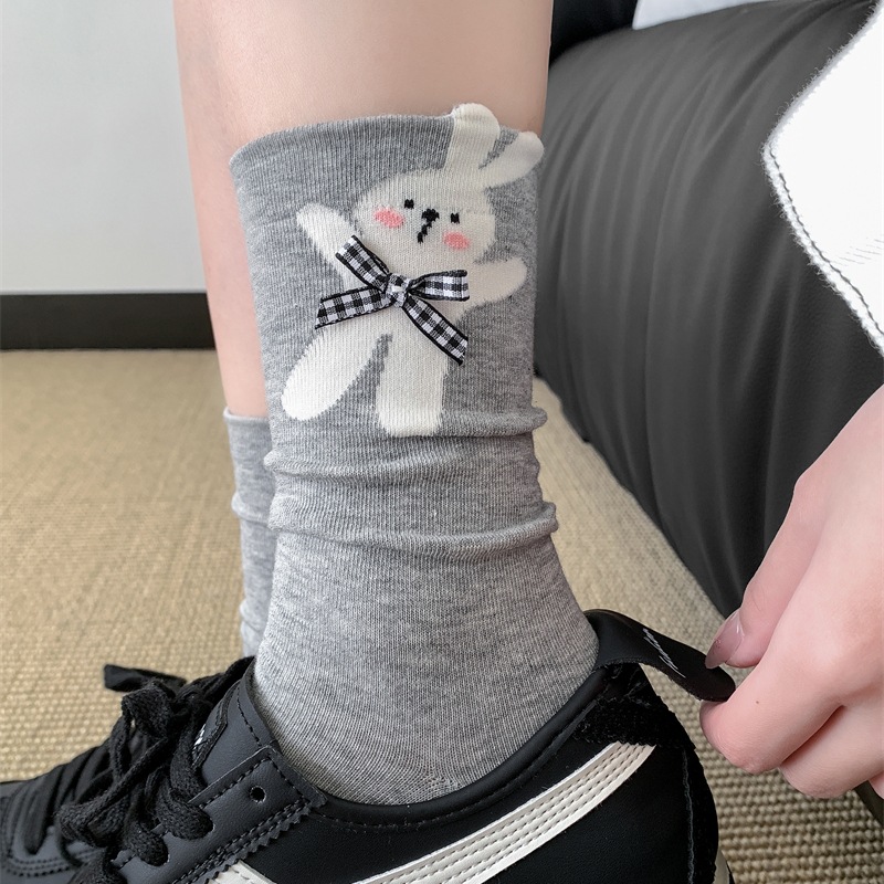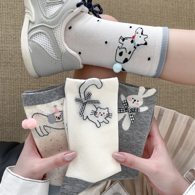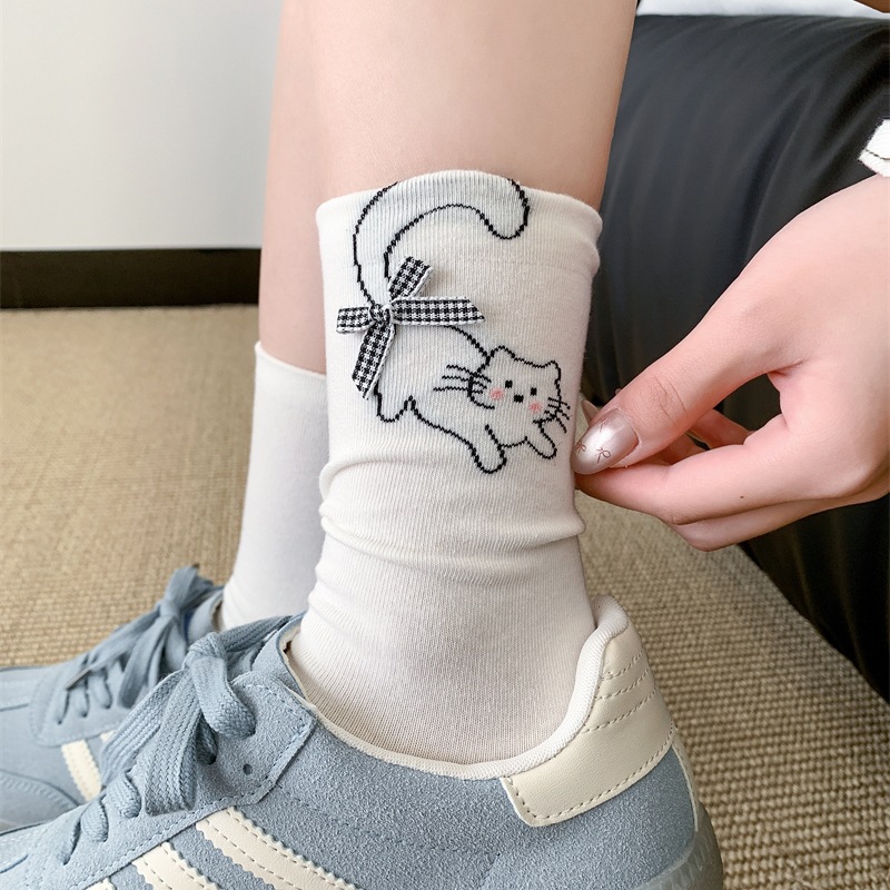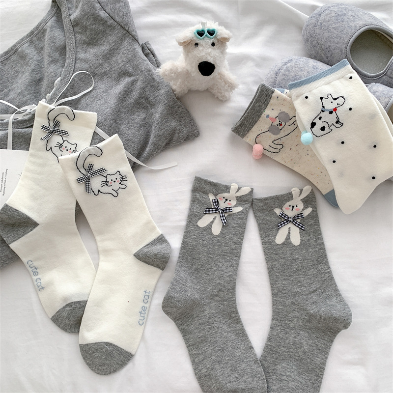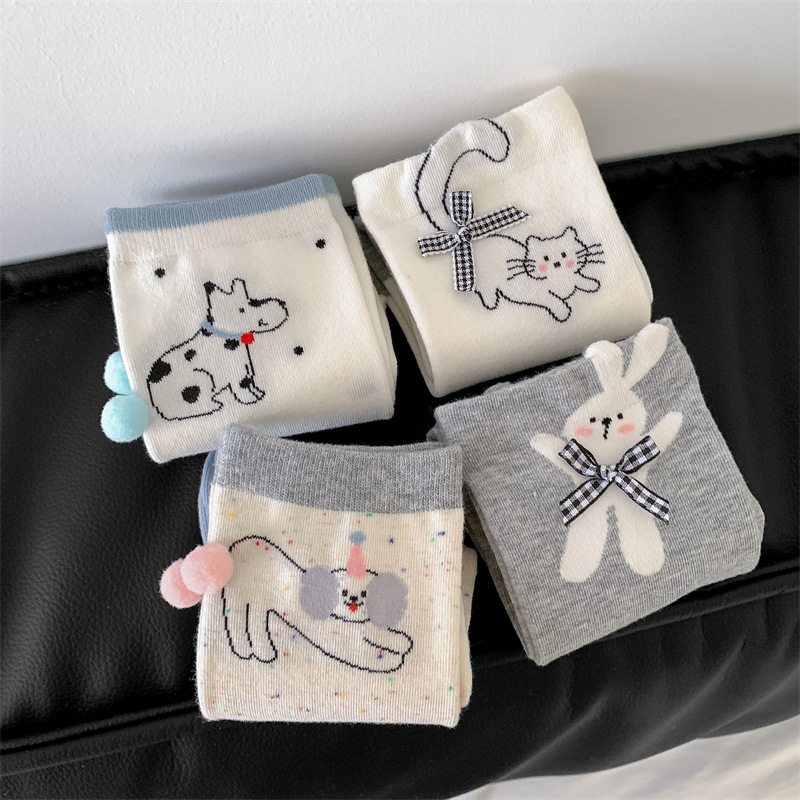 봄과 여름 바둑판 무늬 활 양말 여성 튜브 양말 만화 강아지 뼈없는 더미 양말 여성의 한국 스타일 악세사리 양말스토어 가기
