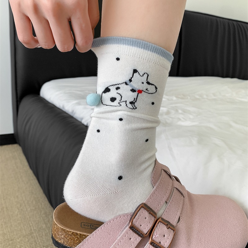 봄과 여름 바둑판 무늬 활 양말 여성 튜브 양말 만화 강아지 뼈없는 더미 양말 여성의 한국 스타일 악세사리 양말