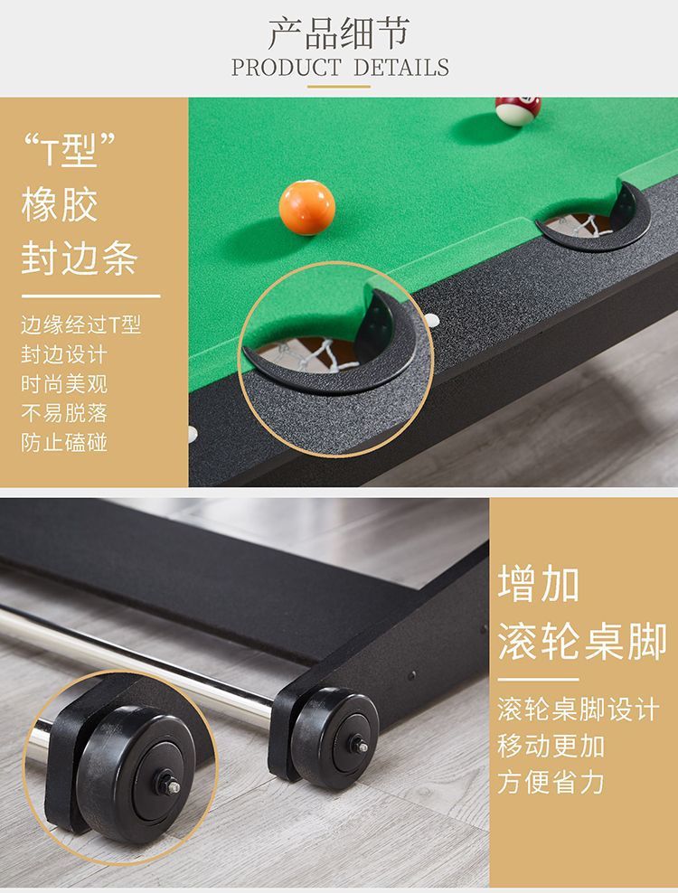 • 1.85m 스탠딩 접이식 볼 테이블(바퀴 포함) + 나뭇결 가죽 녹색 천