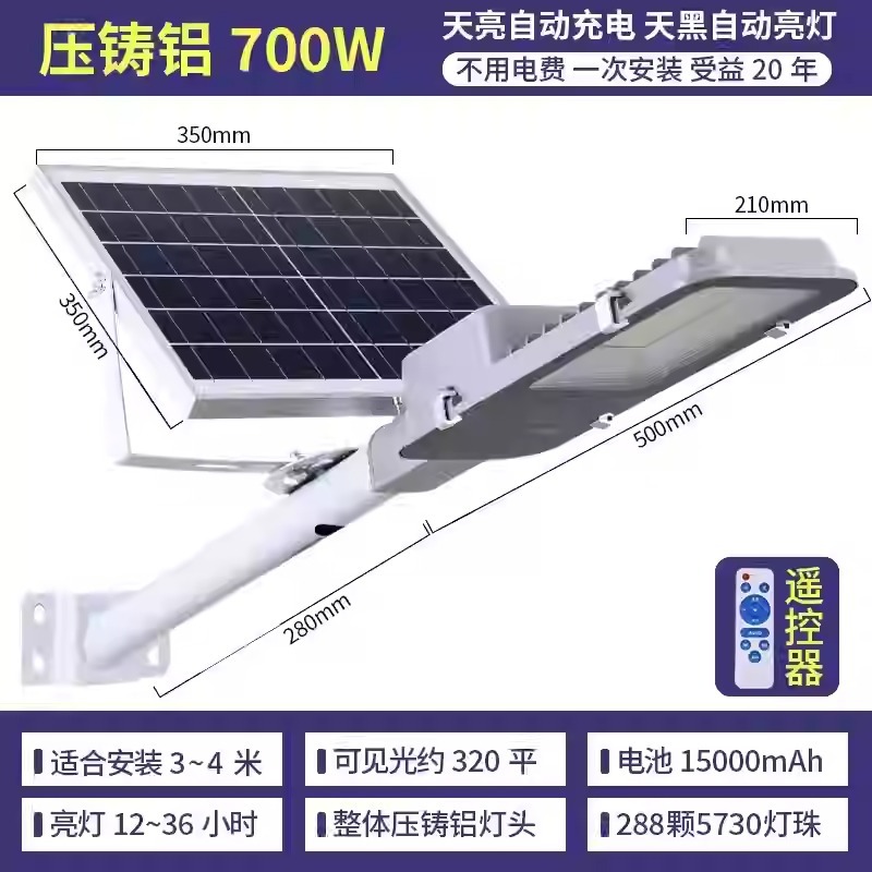 • [가로등 헤드 엔지니어링 모델] 700W*리모컨 + 자동 센서*밝고 긴 배터리 수명