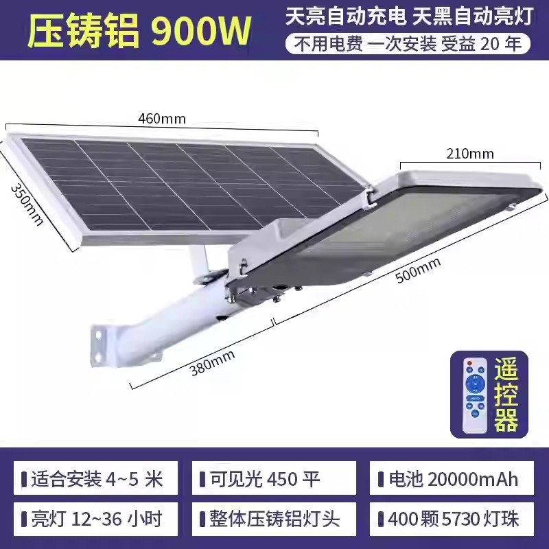 • [가로등 헤드 엔지니어링 모델] 900W*리모컨 + 자동 센서*밝고 긴 배터리 수명