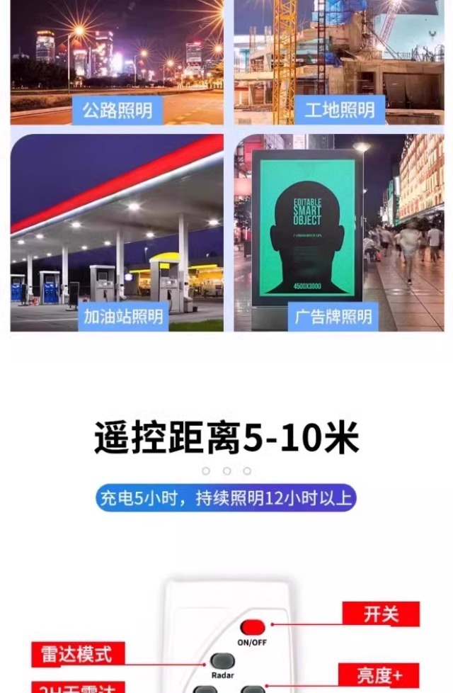• [가로등 헤드 엔지니어링 모델의 향상된 버전] 1500W* 원격 제어 + 자동 유도* 밝고 긴 배터리 수명