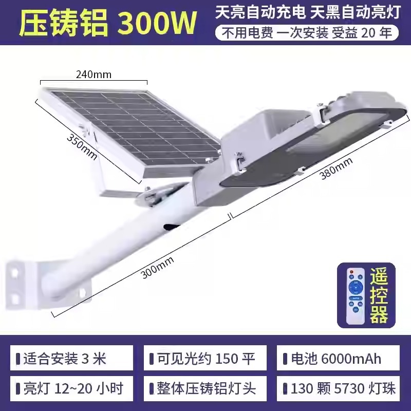 • [가로등 헤드 엔지니어링 모델] 300W*리모컨 + 자동 센서*밝고 긴 배터리 수명