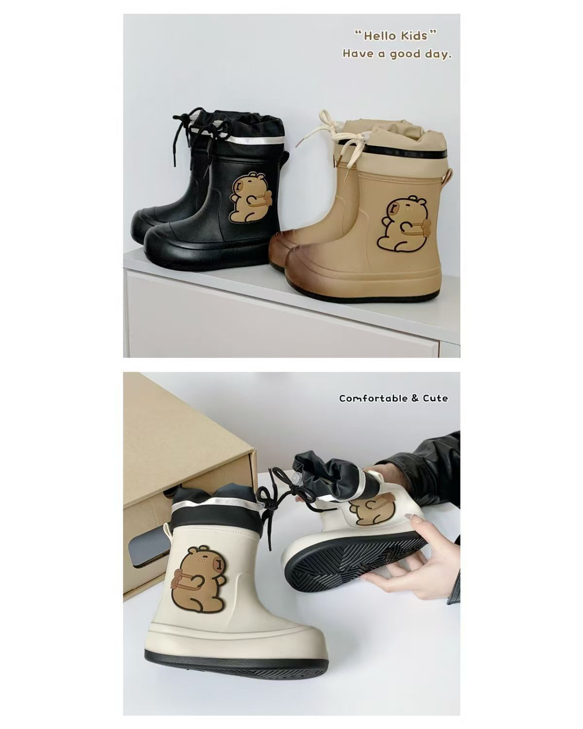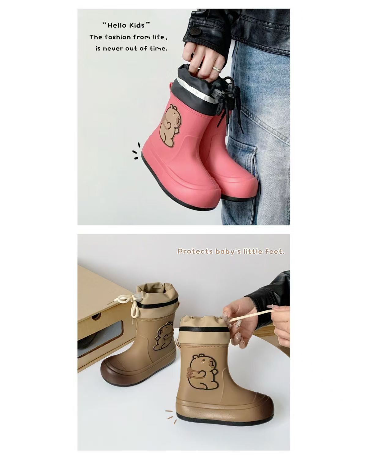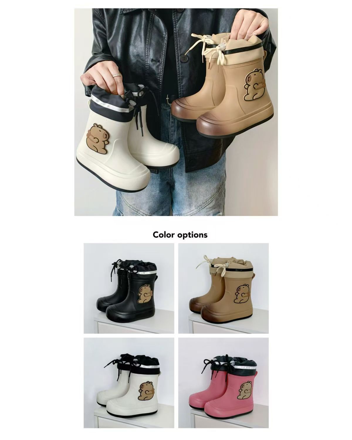 카피 발라 어린이 비 신발 미끄럼 방지 큰 어린이 따뜻한 부모 자식 비 부츠 학교 물 부츠 학생 거들 비 신발 여성