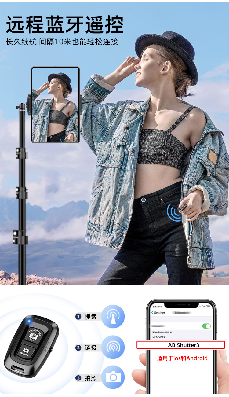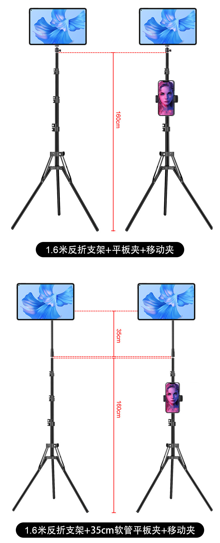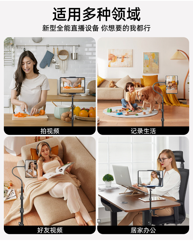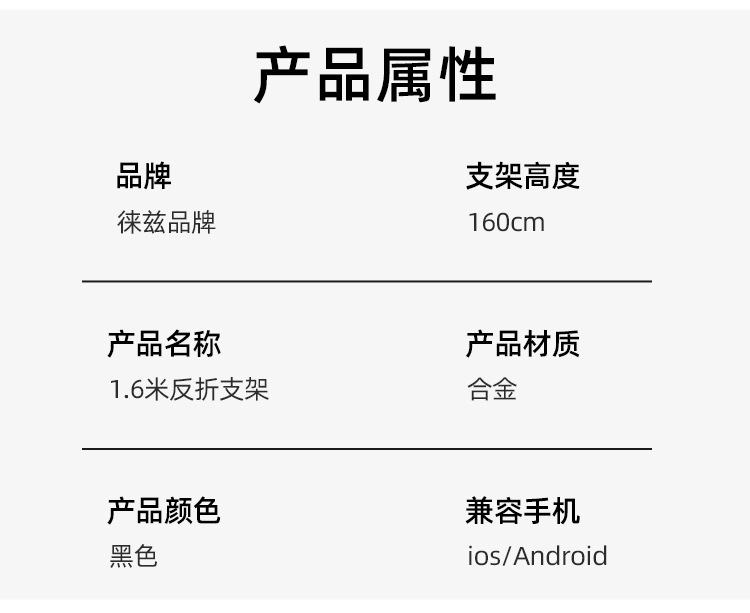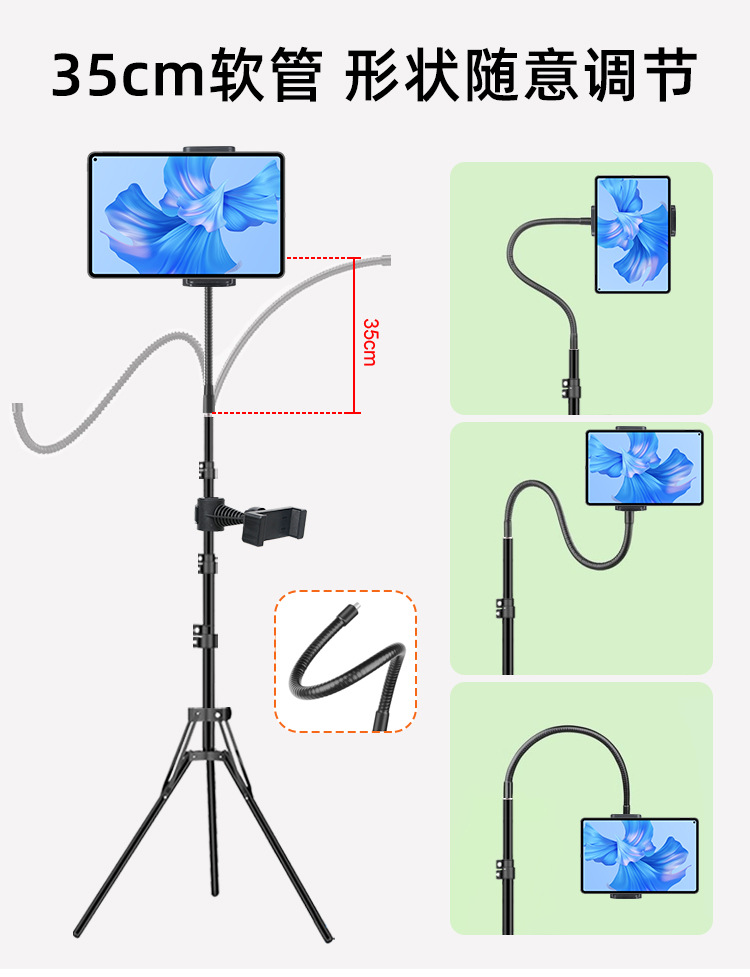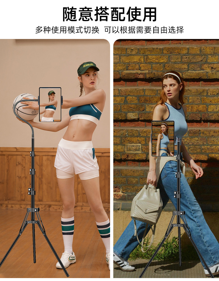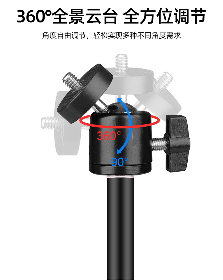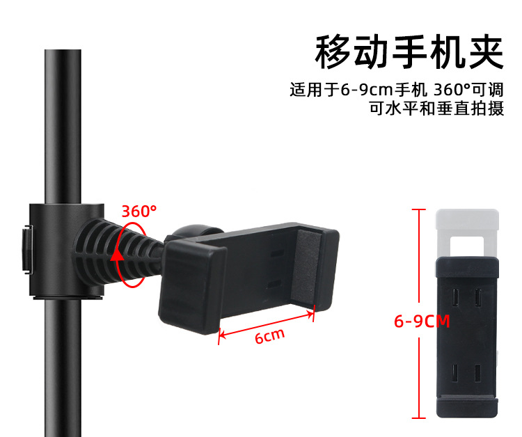• 1.6m 반사 브래킷 + 360도 조정 가능한 팬/틸트 + 휴대폰 및 태블릿 이중 목적 클립 + 블루투스 + 휴대폰 클립