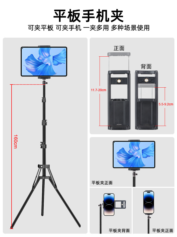 국경 폭발 1.6 미터 평면 브래킷 바닥 삼각대 휴대 전화 평면 범용 사진 라이브 비디오 휴대용스토어 가기