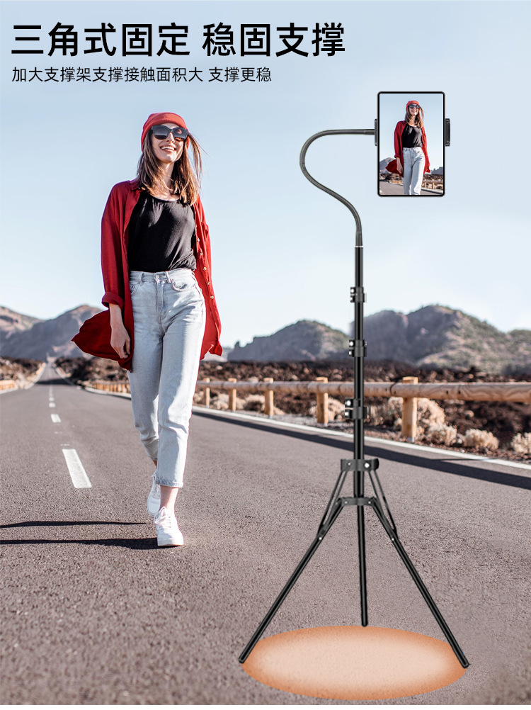 국경 폭발 1.6 미터 평면 브래킷 바닥 삼각대 휴대 전화 평면 범용 사진 라이브 비디오 휴대용