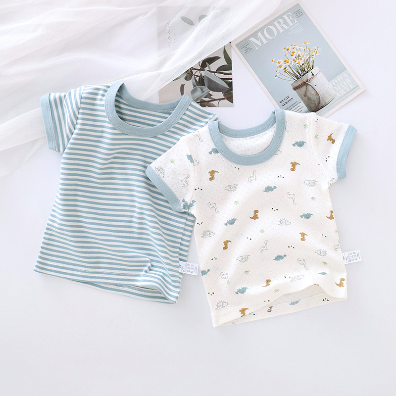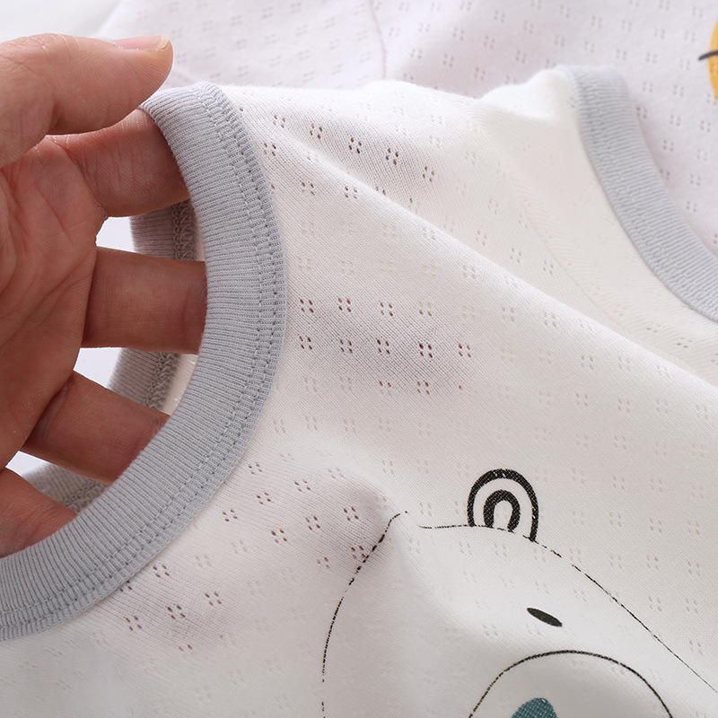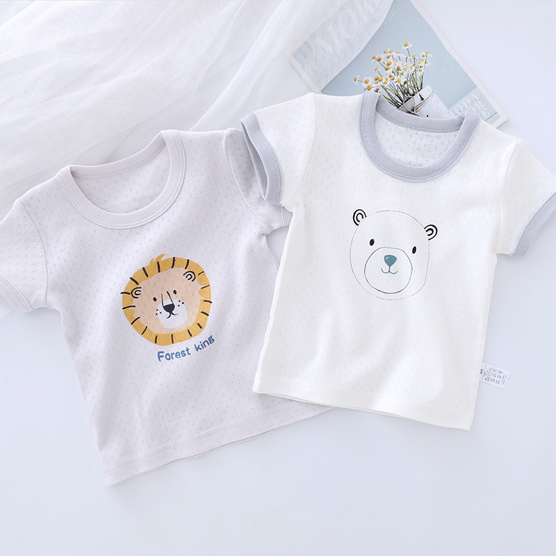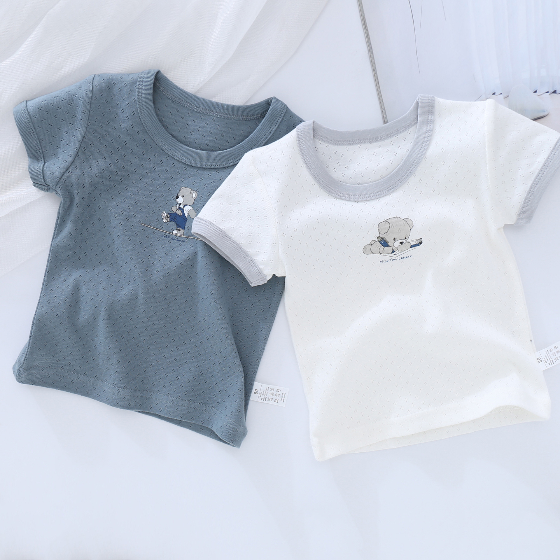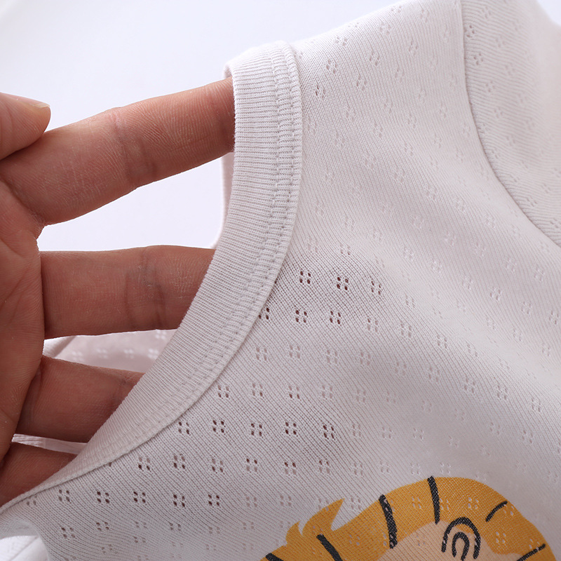 여름 얇은 소년의 반팔 순면 카테고리 일본 호흡 면 메쉬 통기성 중식 및 대형 어린이를위한 반팔 탑스토어 가기