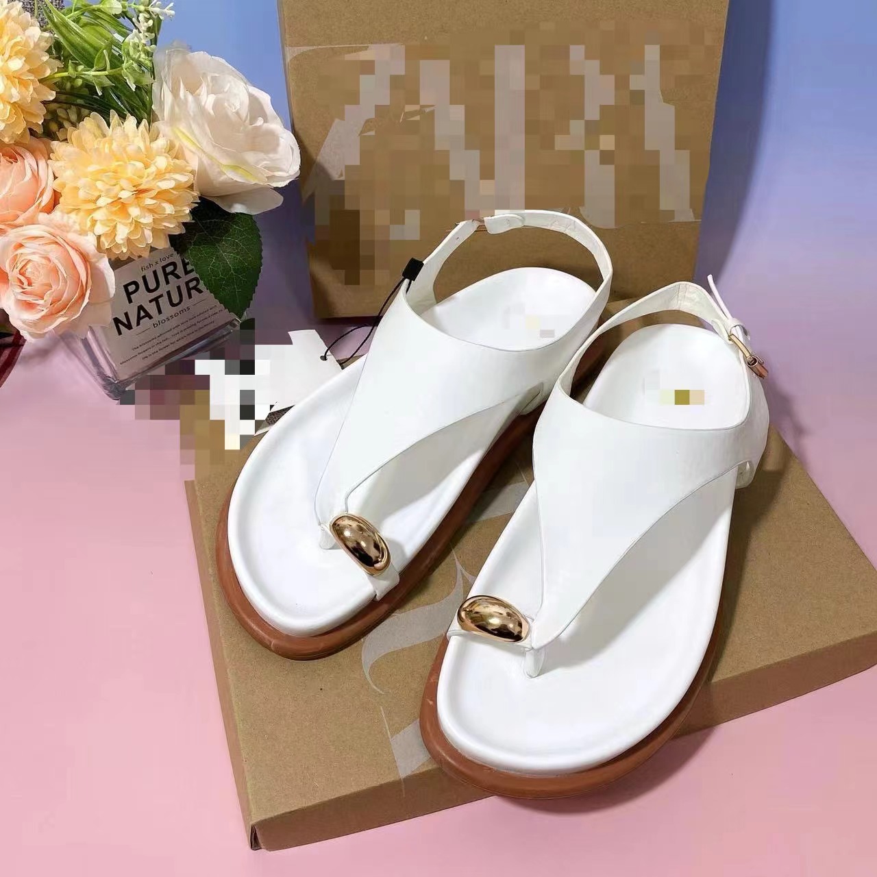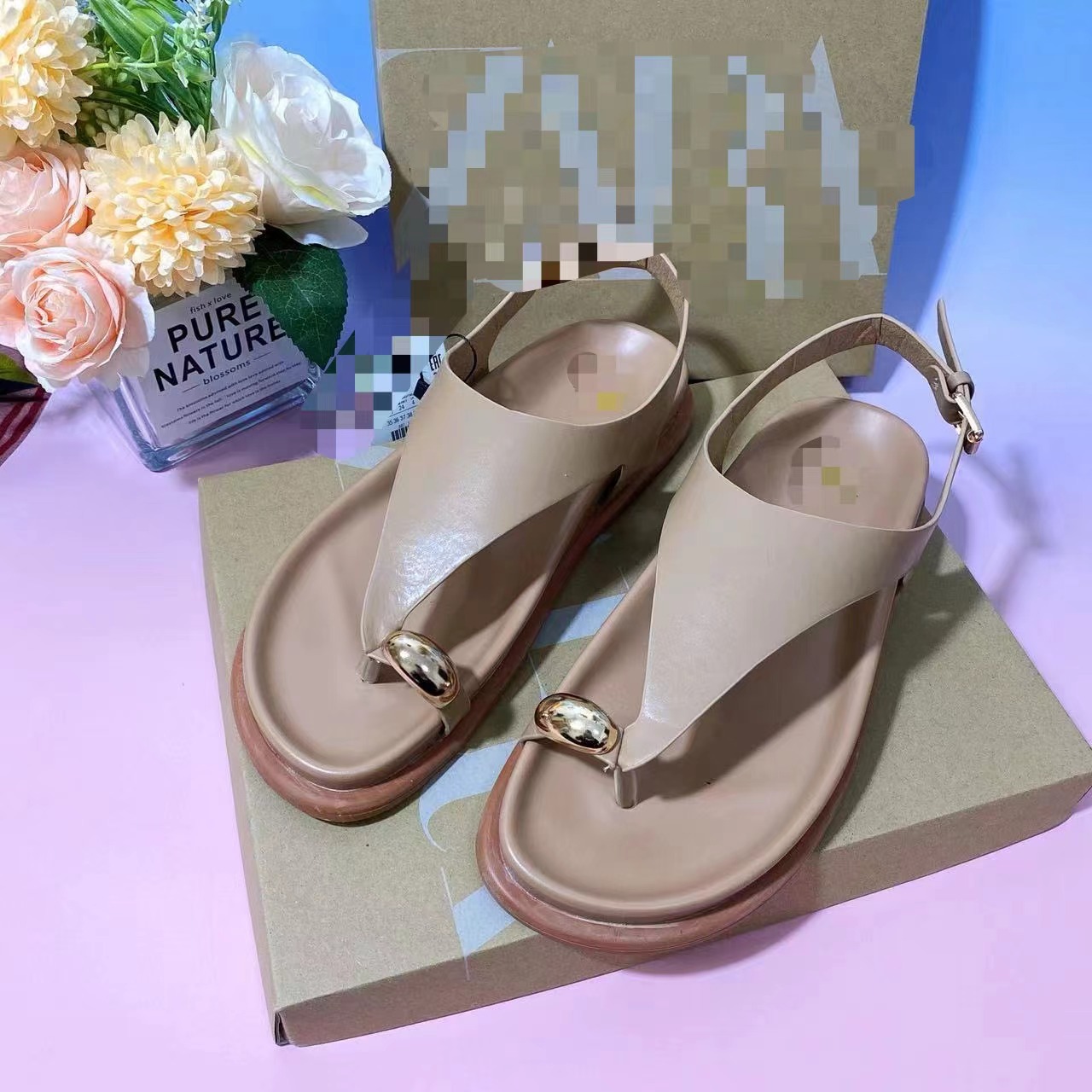 ZA 여성 신발 2025 봄과 여름 헤링본 플립 플롭 플랫 캐주얼 슬리퍼 금속 장식 샌들 여성을위한 패션 두꺼운 밑창 비치 신발스토어 가기